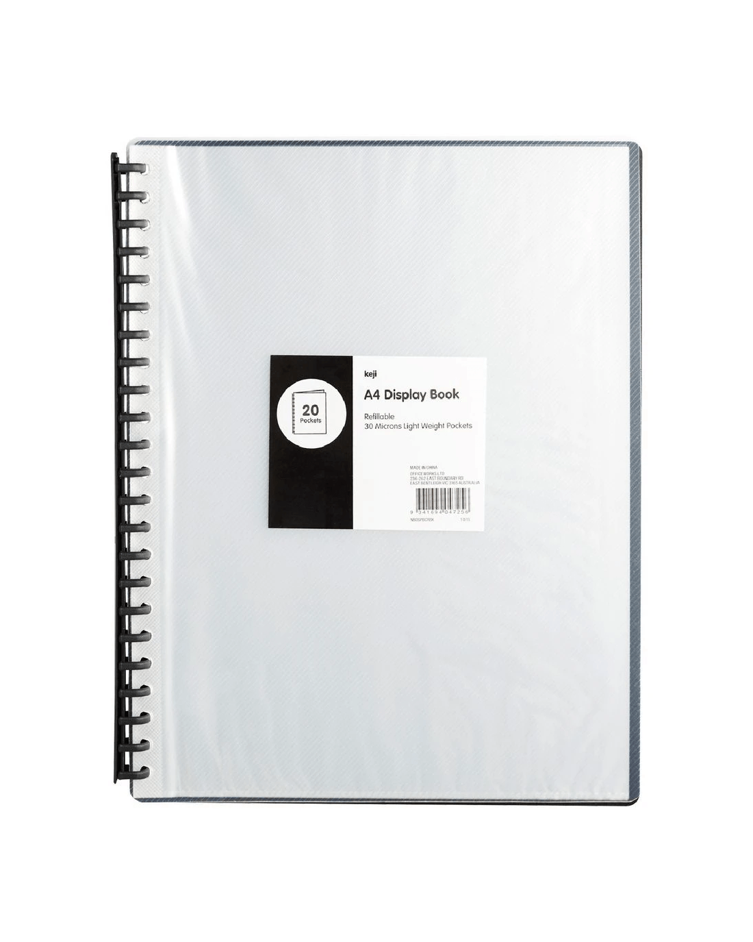 Keji Display Book A4 20 Pocket Refillable Clear and Black