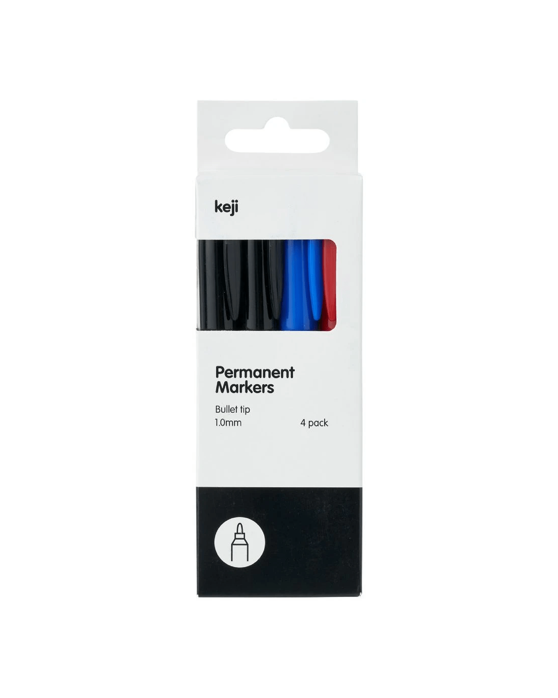 Sold by OfficeworksKeji Permanent Markers Bullet 1.0mm Assorted 4 Pack