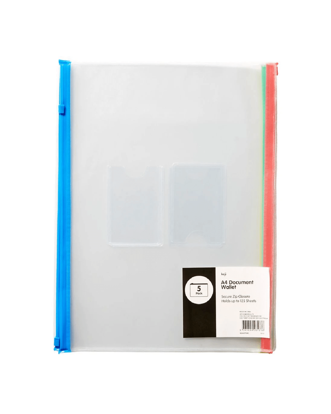 Keji PVC Document Wallet A4 Zip Closure 5 Pack