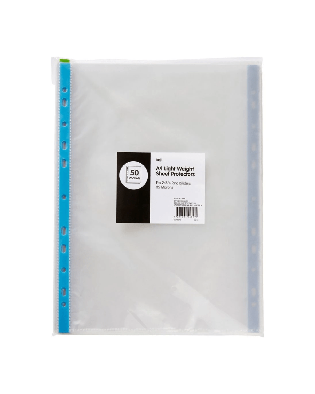 Sold by OfficeworksKeji Sheet Protector A4 Light Weight Coloured Spine 50 Pack
