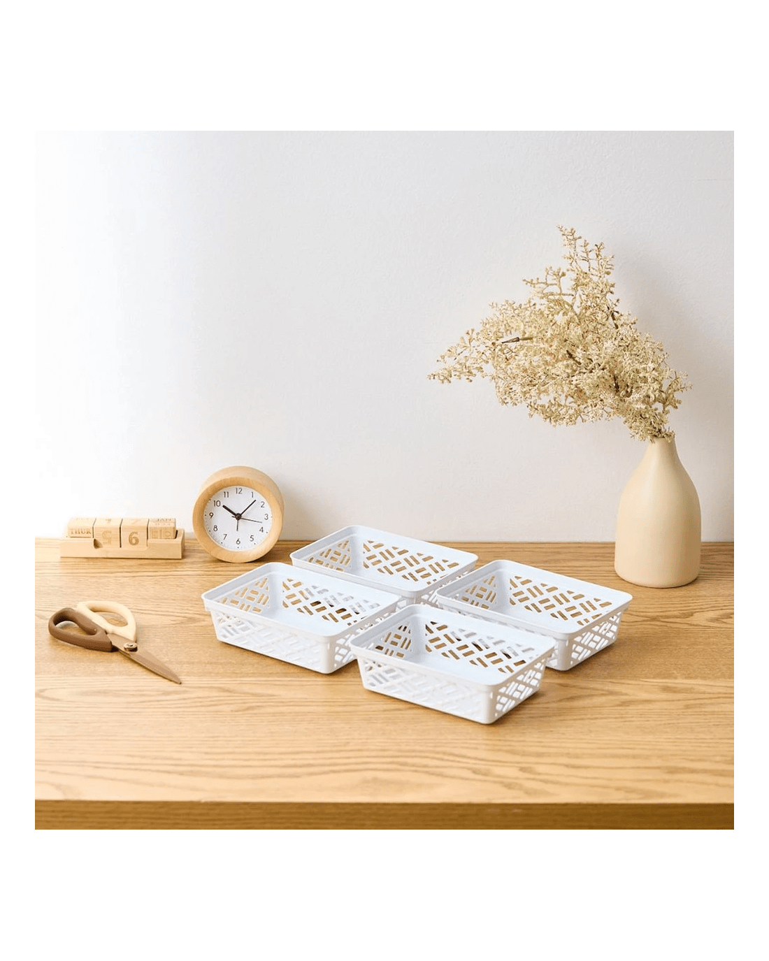 Sold by OfficeworksKeji Small Storage Tray 800mL 4 Pack White