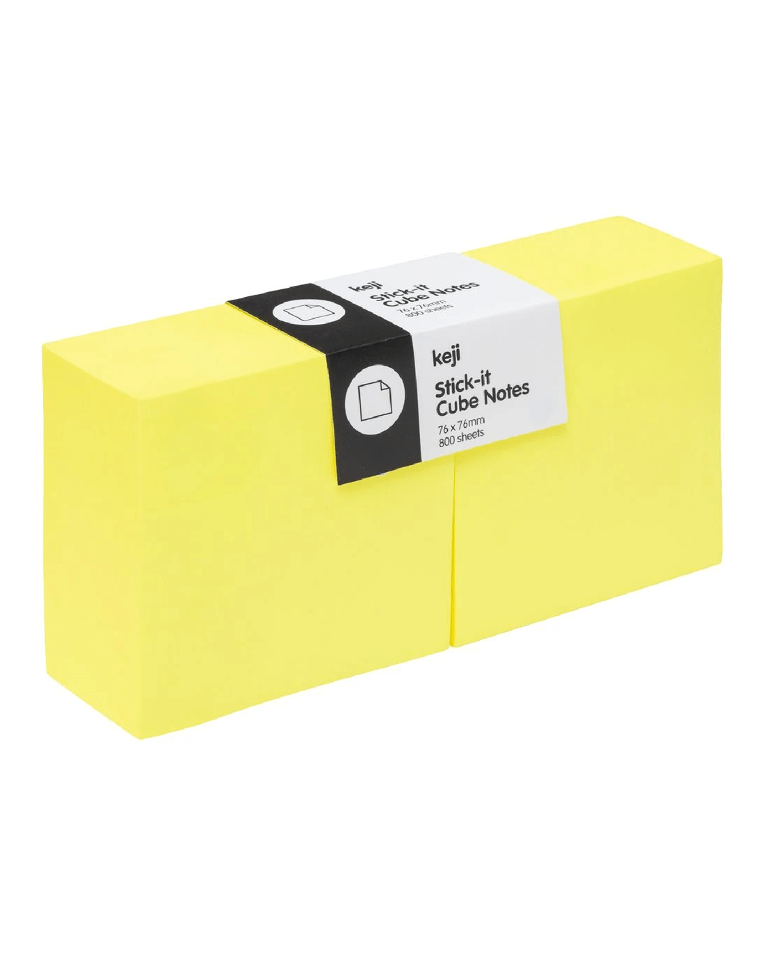 Keji Stick-it Cube Notes 76x76mm Neon Yellow 2 Pack