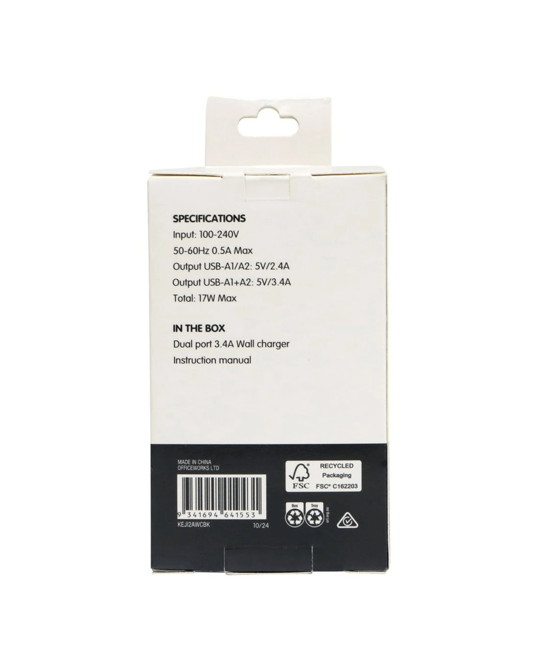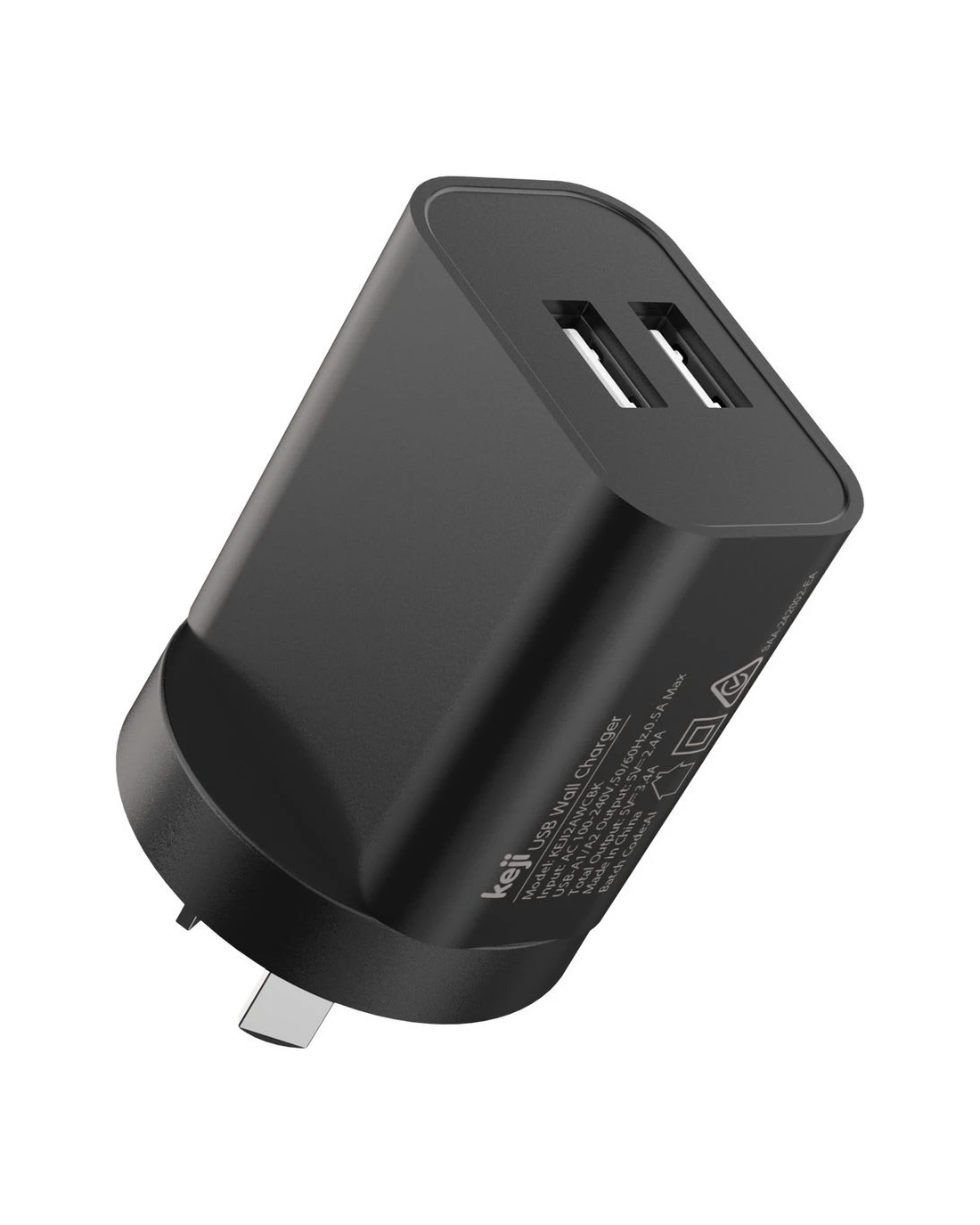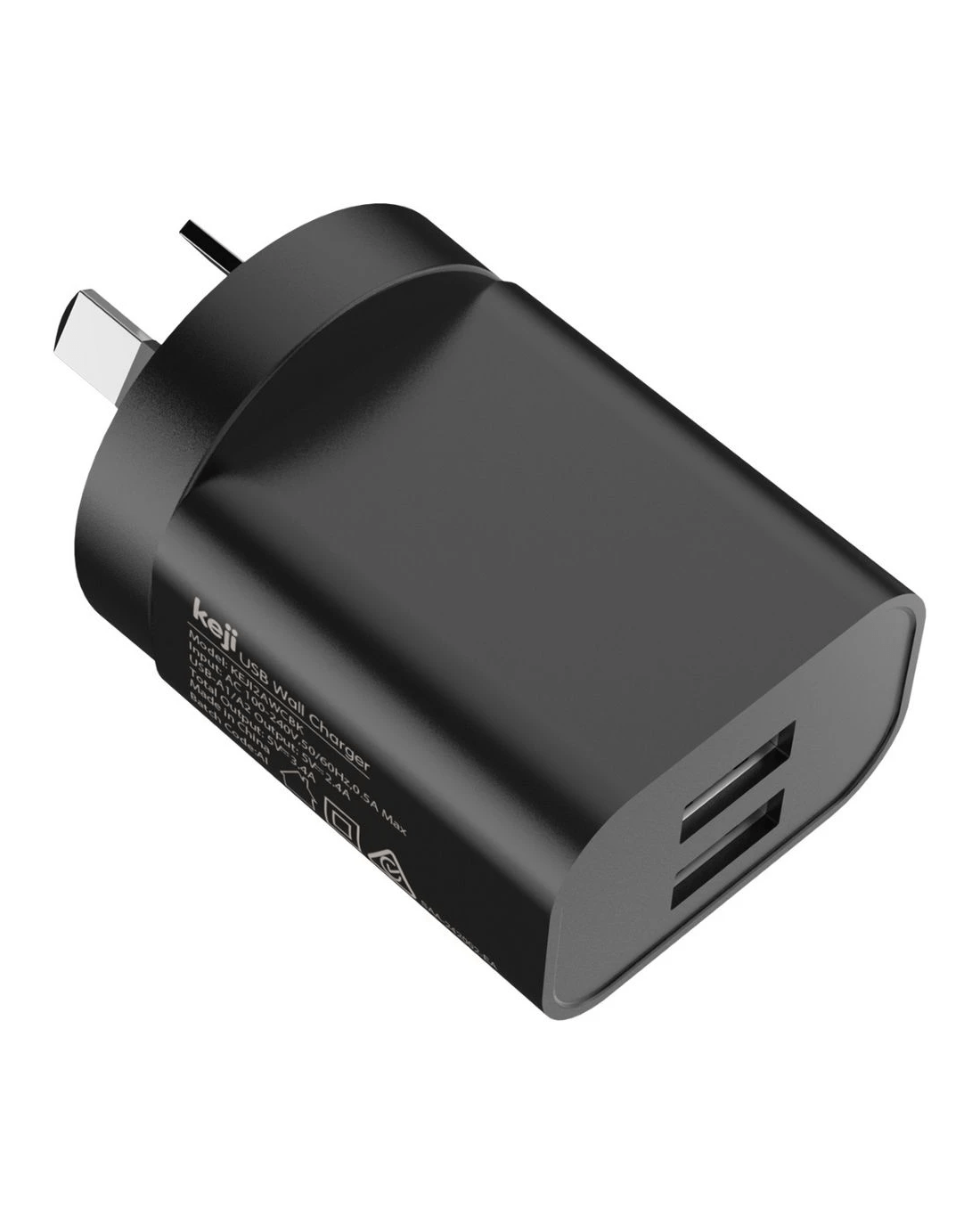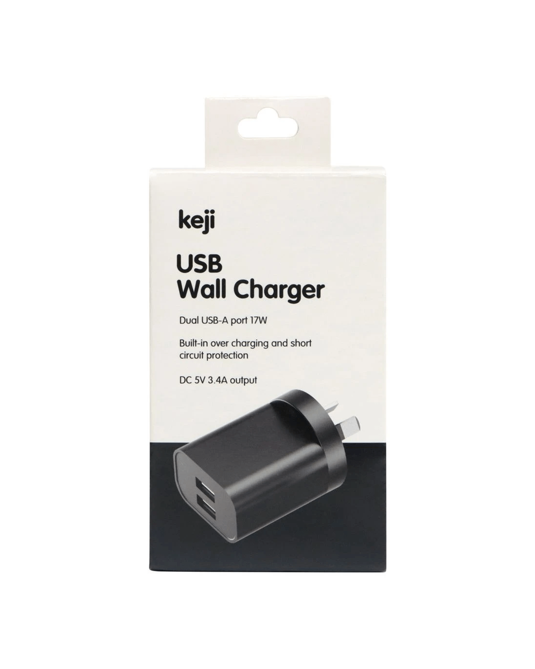 Sold by OfficeworksKeji USB-A 17W Dual Wall Charger Black