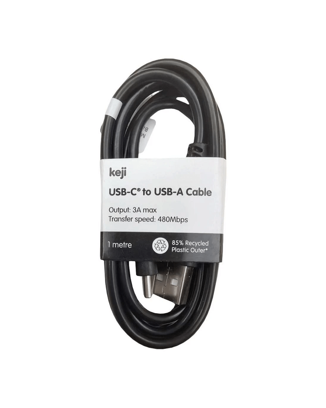 Keep your devices charged with this Keji USB-A to USB-C cable. It's 1m long and can be used to connect devices with a USB-C port to a computer or charger with a USB-A port. Plus, you can use it to charge your devices or sync data from your device to your computer.