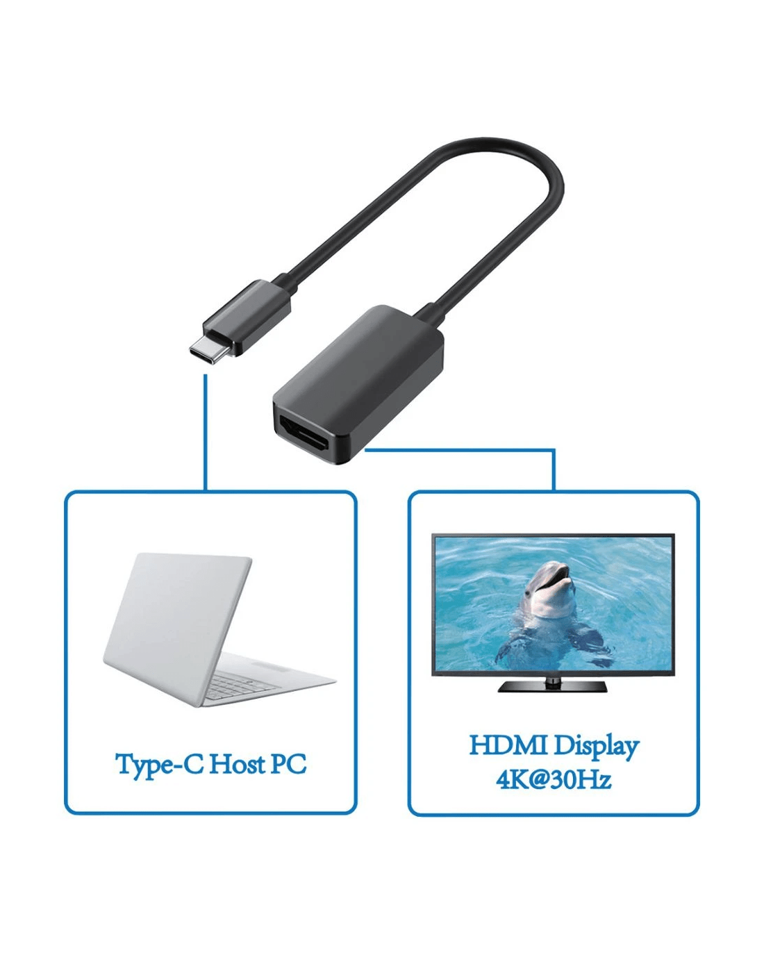 This Keji USB-C to 4K HDMI Adapter allows you to connect your USB-C equipped MacBook, Windows computer, Chromebook or tablet to an 4K monitor, display or TV using an existing HDMI cable. With durable casing, you can future-proof your display with this USB-C to 4K connection. Best of all, it's host powered, meaning no additional power is required.