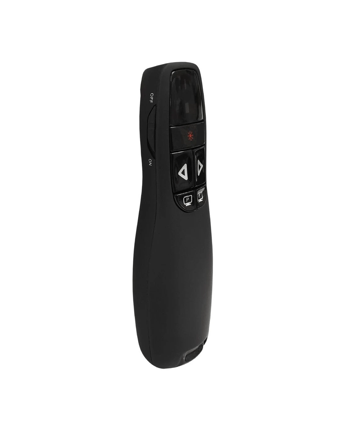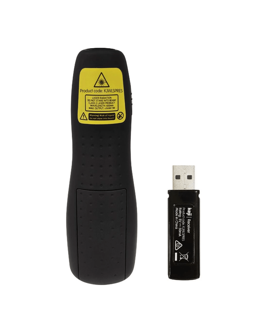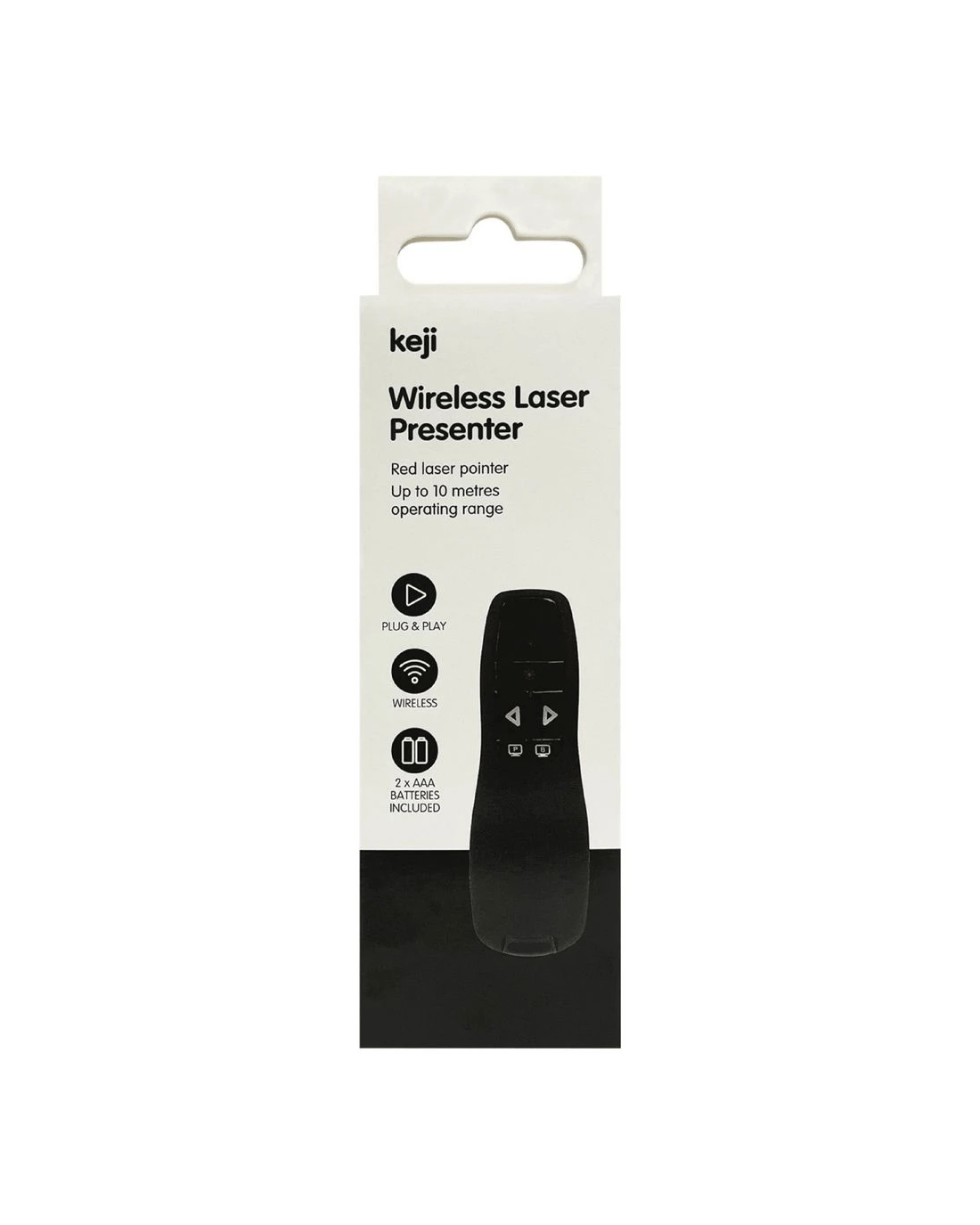 The Keji Laser Presenter is a great tool for your presentations. It has a 10 m range and integrated controls for Microsoft PowerPoint. It has a plug and play receiver for wireless connectivity.