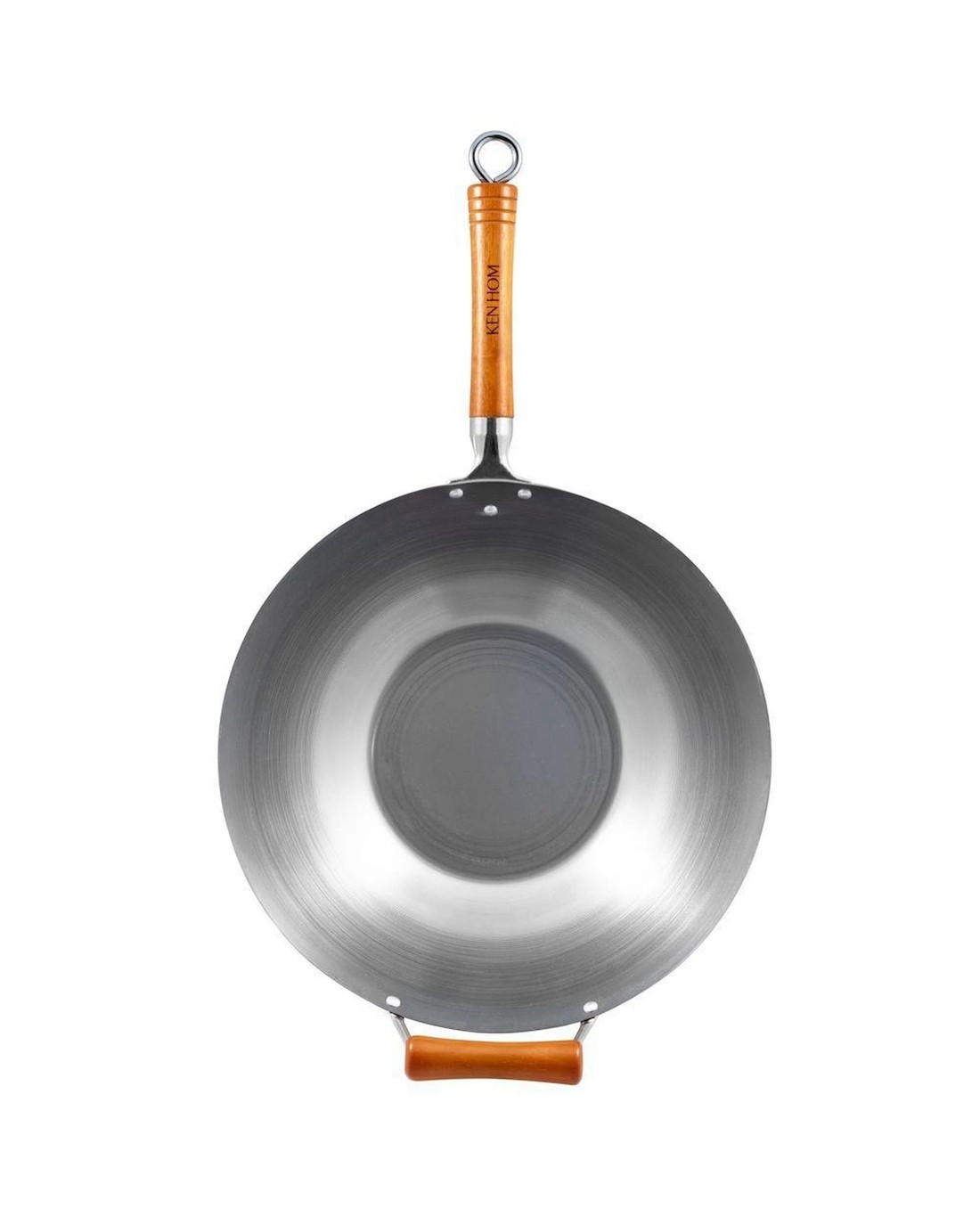 The Excellence range has been developed to not only withstand the intense heat required for stir-fry cooking. Traditional Chinese carbon steel seasoning wok. In time a natural non-stick surface will develop with use. 1.8mm gauge carbon steel. Beech handles with hanging loop and helper handle. Flat base to sit on any hob type including induction. Metal tool suitable.