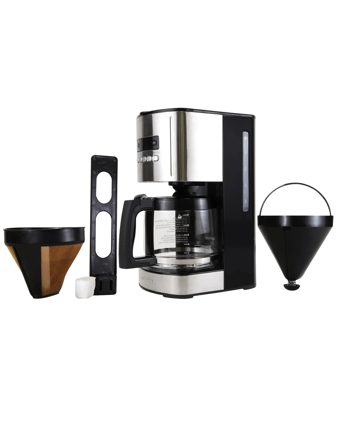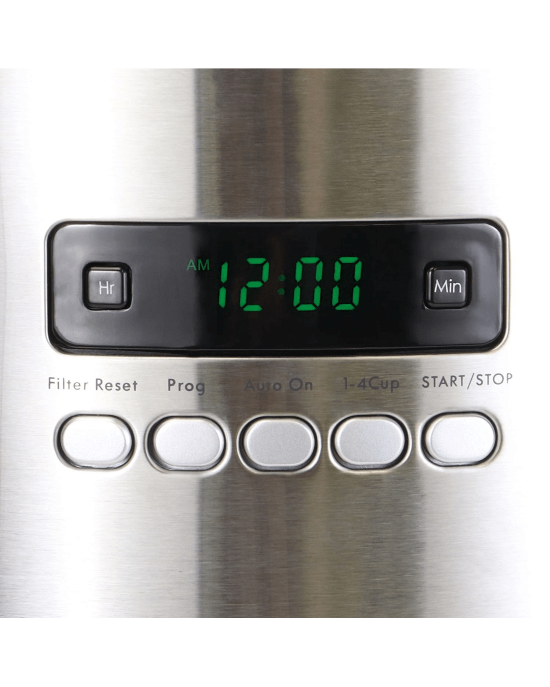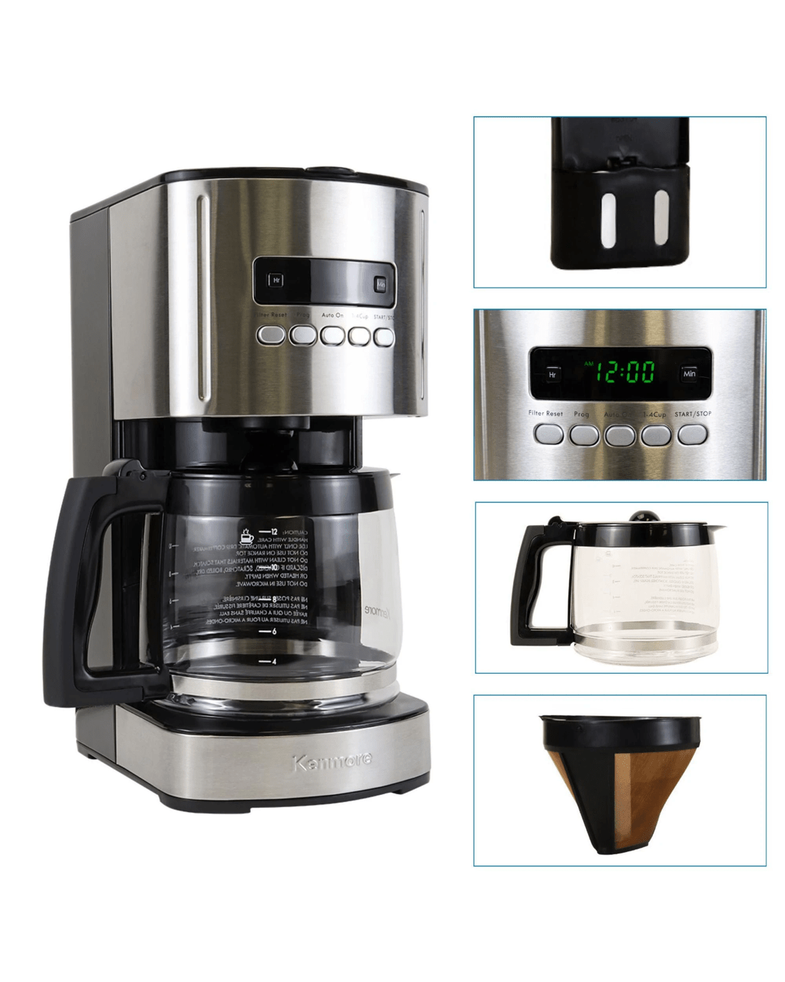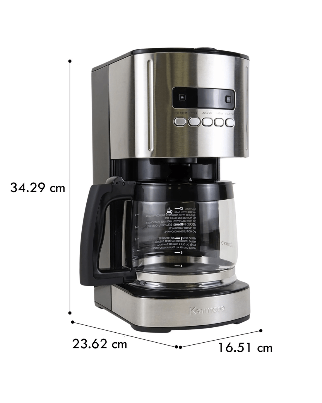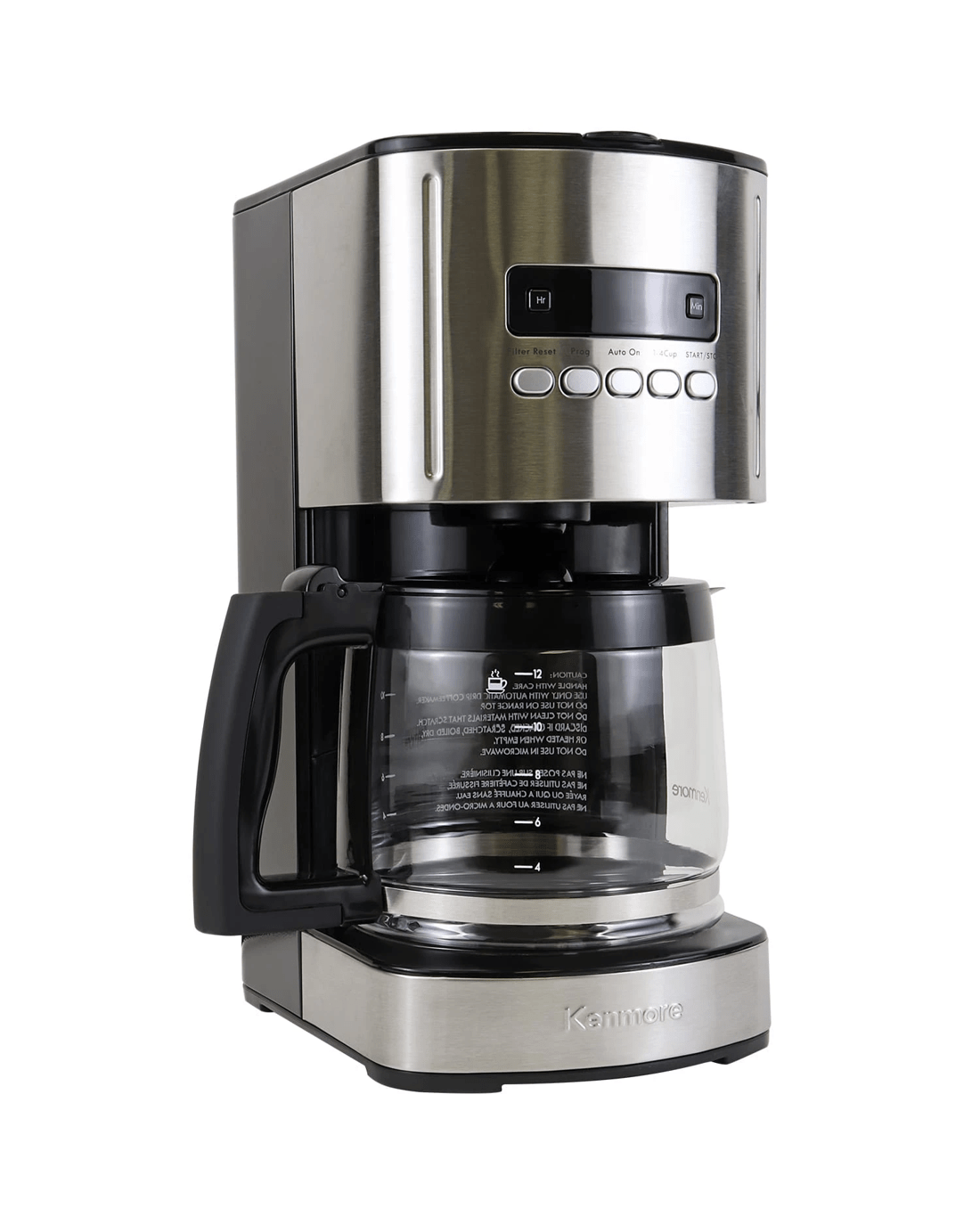 There's nothing better in the world than that first sip of coffee in the morning, and with this programmable 12 cup coffee maker you won't have to wait. Program the brewer the night before and wake up to the delicious aroma of perfectly brewed coffee or make a fresh, hot pot with the push of a button. The dishwasher-safe glass carafe holds up to 12 cups of brewed coffee and a non-stick warming plate keeps it hot and flavorful for hours. The attractive stainless steel profile with four color options will complement any decor and the narrow profile means more countertop space. With a charcoal filter to remove impurities from the water before brewing and state-of-the-art "aroma control" brewing technology that steeps the grounds before releasing the coffee into the carafe, you'll definitely be waking up on the right side of the bed from now on. Best of all, kenmore products are covered by a 2-year limited warranty for your peace of mind. This product features an Australian rated plug. It is compatible with 220-240 VAC.