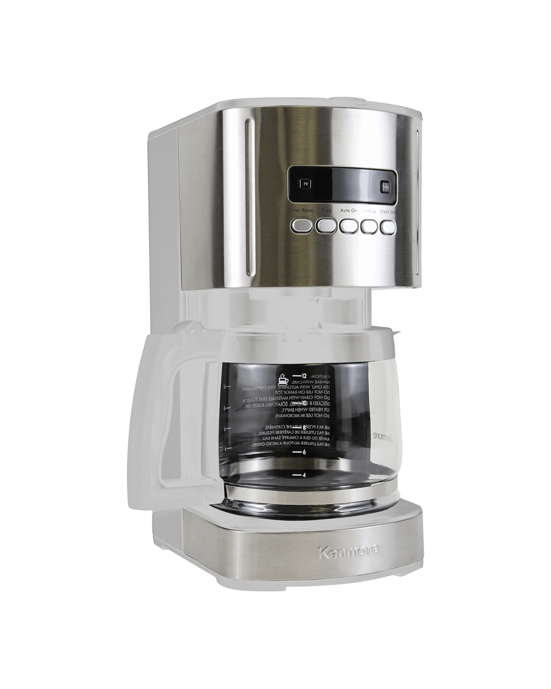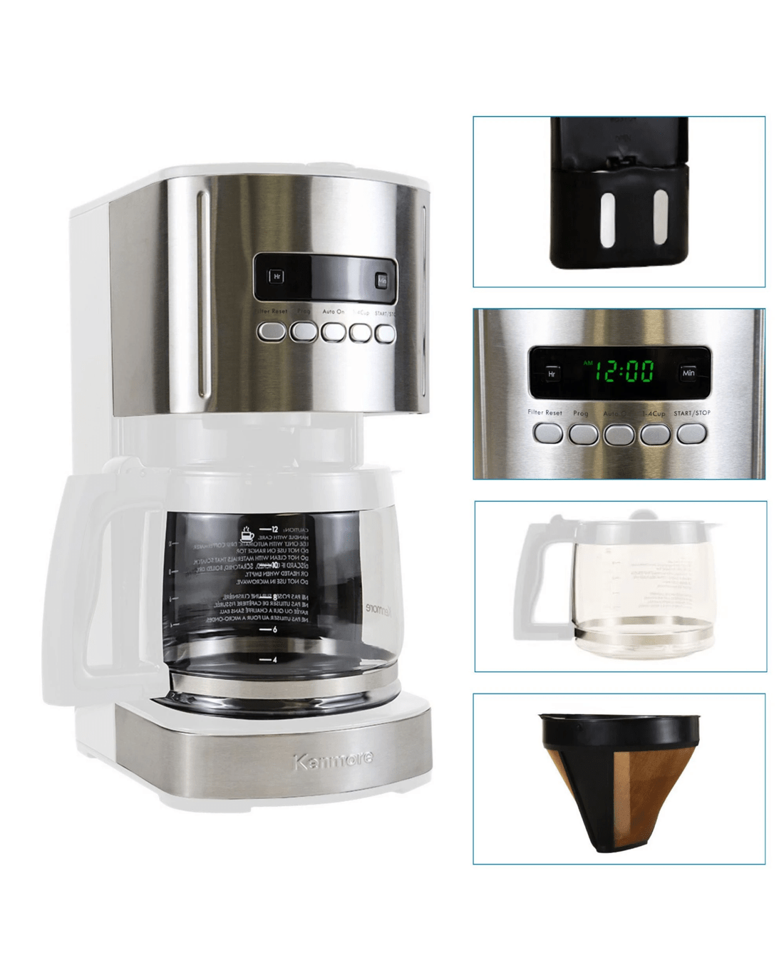 There's nothing better in the world than that first sip of coffee in the morning, and with this programmable 12 cup coffee maker you won't have to wait. Program the brewer the night before and wake up to the delicious aroma of perfectly brewed coffee or make a fresh, hot pot with the push of a button. The dishwasher-safe glass carafe holds up to 12 cups of brewed coffee and a non-stick warming plate keeps it hot and flavorful for hours. The attractive stainless steel profile with four color options will complement any decor and the narrow profile means more countertop space. With a charcoal filter to remove impurities from the water before brewing and state-of-the-art "aroma control" brewing technology that steeps the grounds before releasing the coffee into the carafe, you'll definitely be waking up on the right side of the bed from now on. Best of all, kenmore products are covered by a 2-year limited warranty for your peace of mind. This product features an Australian rated plug. It is compatible with 220-240 VAC.