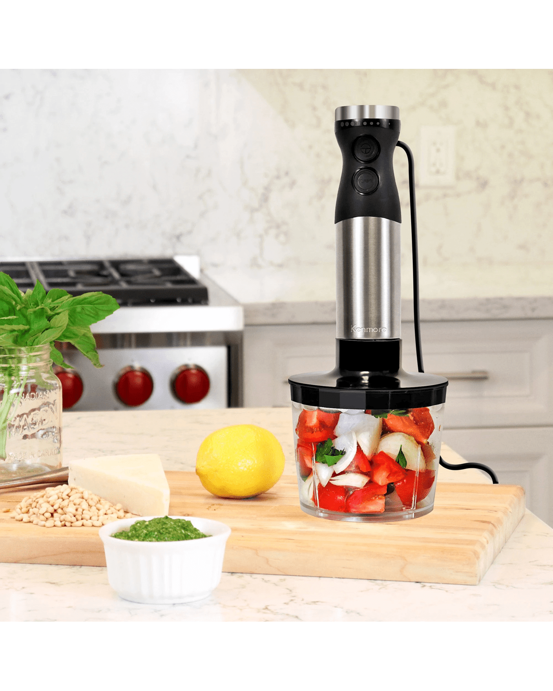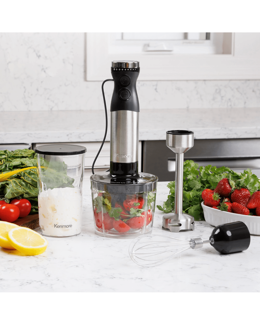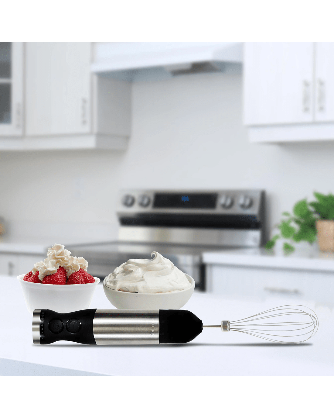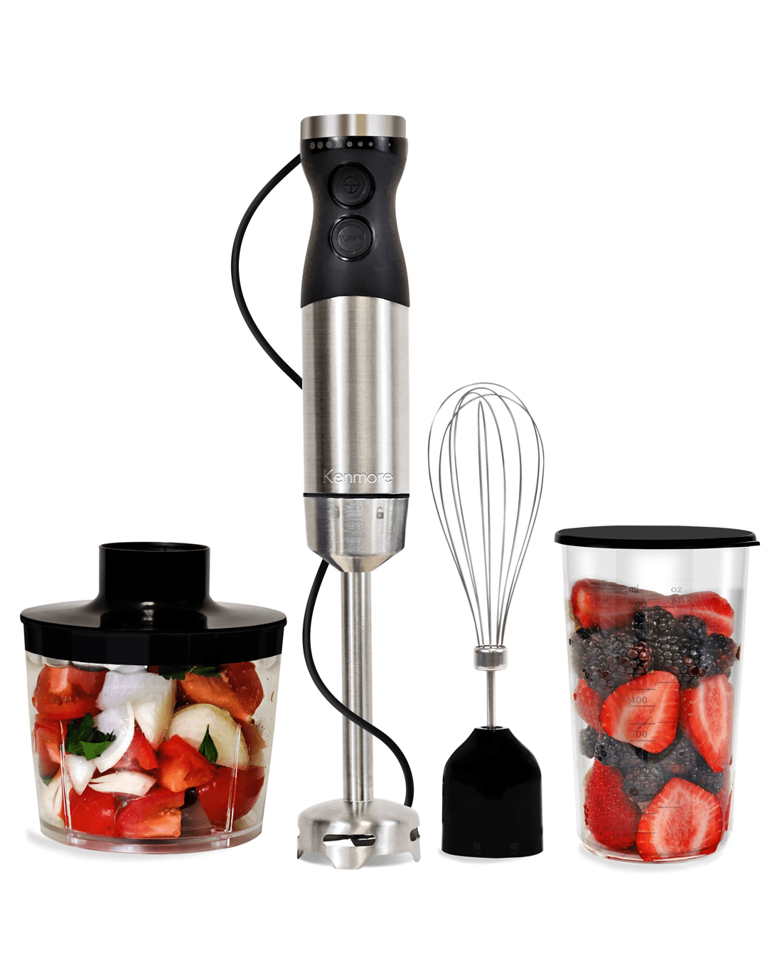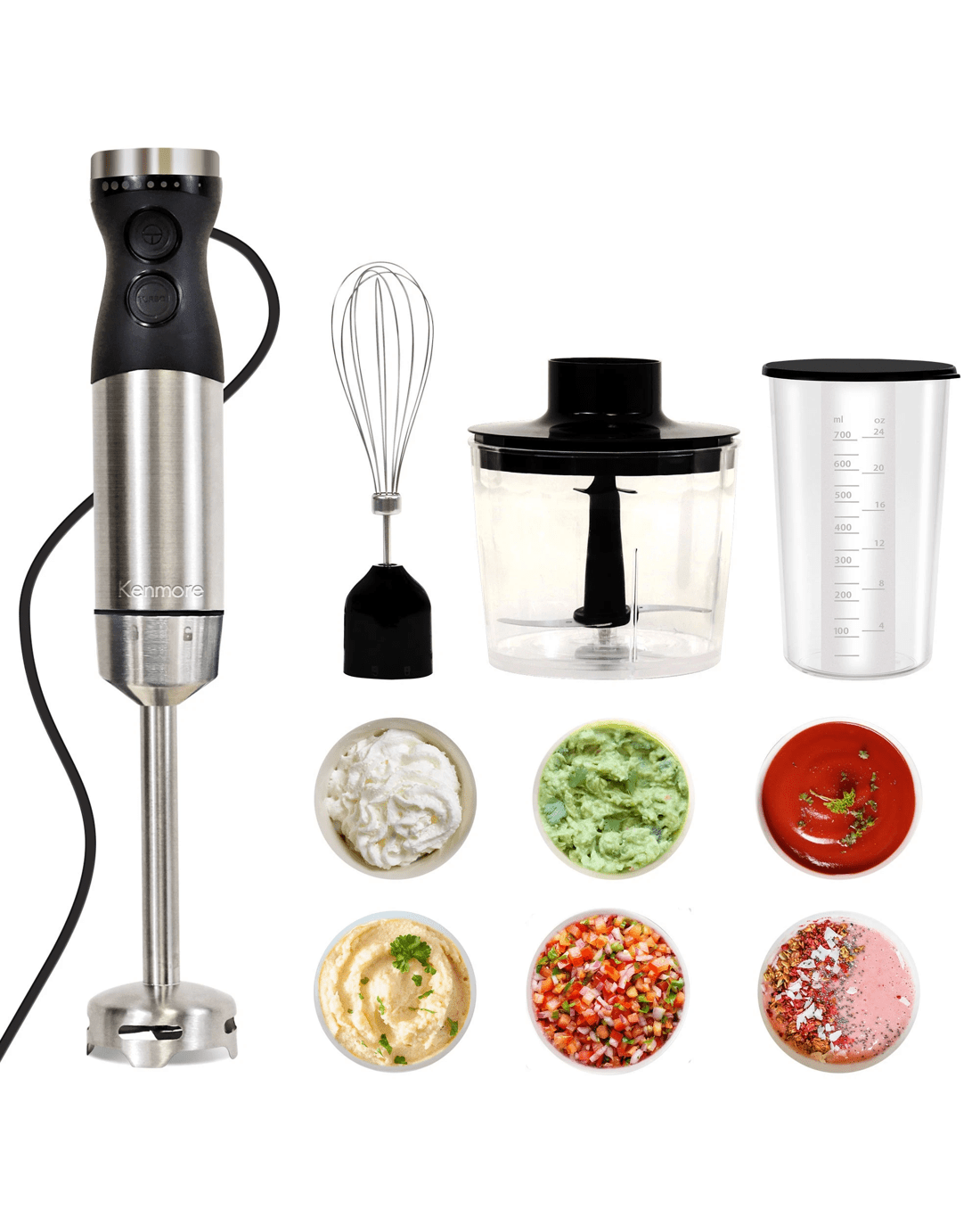 The kenmore variable speed hand blender is the perfect tool for creating delicious smoothies, purees and baby food. With a powerful 250w motor, variable speed control, and stainless steel quad blade technology, you can achieve the perfect puree with ease. Toss out your old handheld whisk and create perfect froth and fluffy whipped cream in seconds with the balloon whisk attachment. Use the food chopper attachment to create delicious chunky salsas and pestos or puree silky smooth soups right in the pot with the blending stick. Keep your ingredients in one place and blend smoothies or shakes right in the included 700ml capacity beaker and add the beaker lid for convenient storage. plus, it is easy to clean and dishwasher safe! Whether you are using it as a puree maker, baby food processor, or immersion whisk, This product features an Australian rated plug. It is compatible with 220-240 VAC.