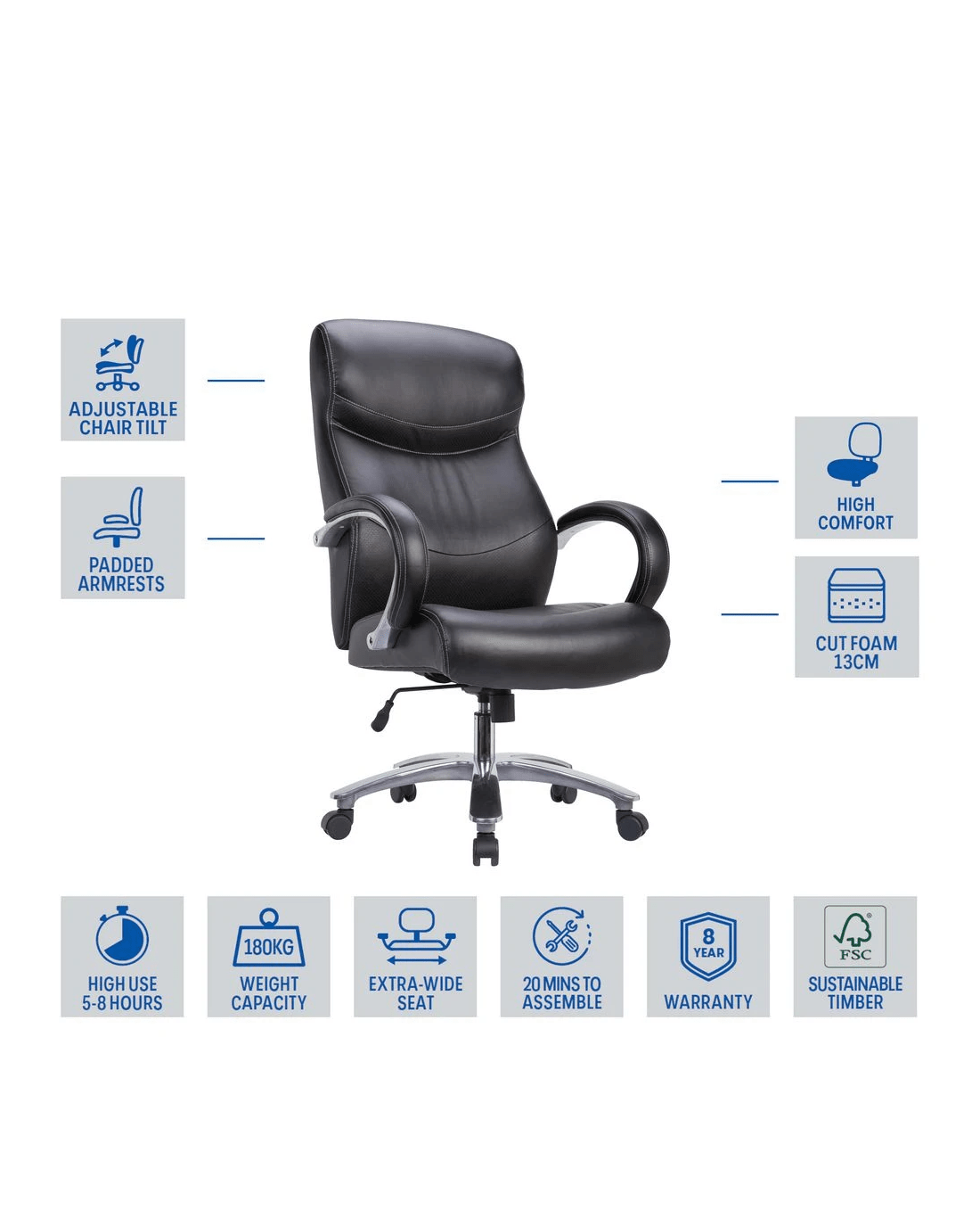 Sold by OfficeworksKennedy High Back Chair Black Ergonomic Chairs and Desk Chairs