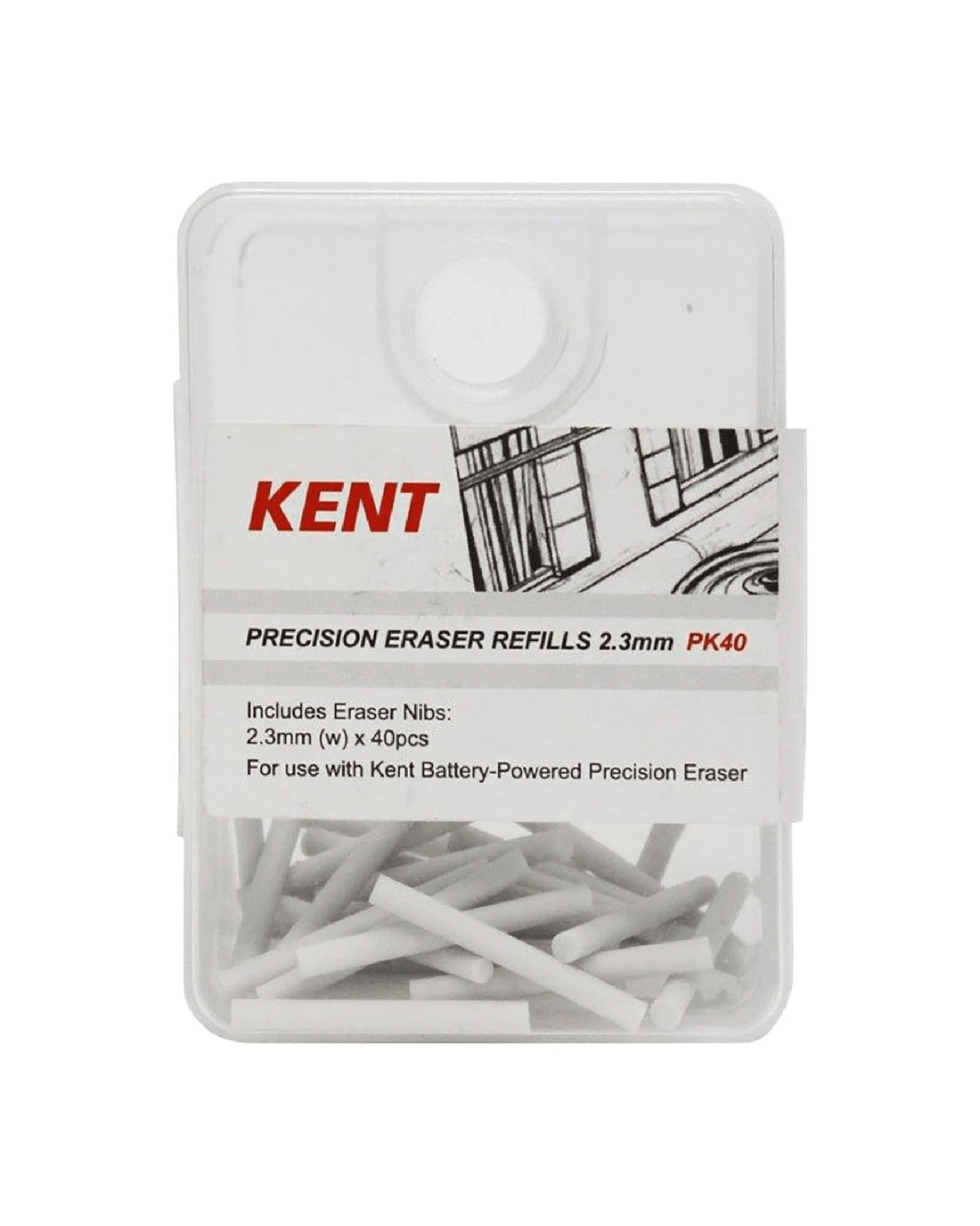 These Kent Precision Eraser Refills are designed for the Kent Battery Powered Eraser. They are 2.3 mm in size, and come in a handy 40 pack for repeated use.