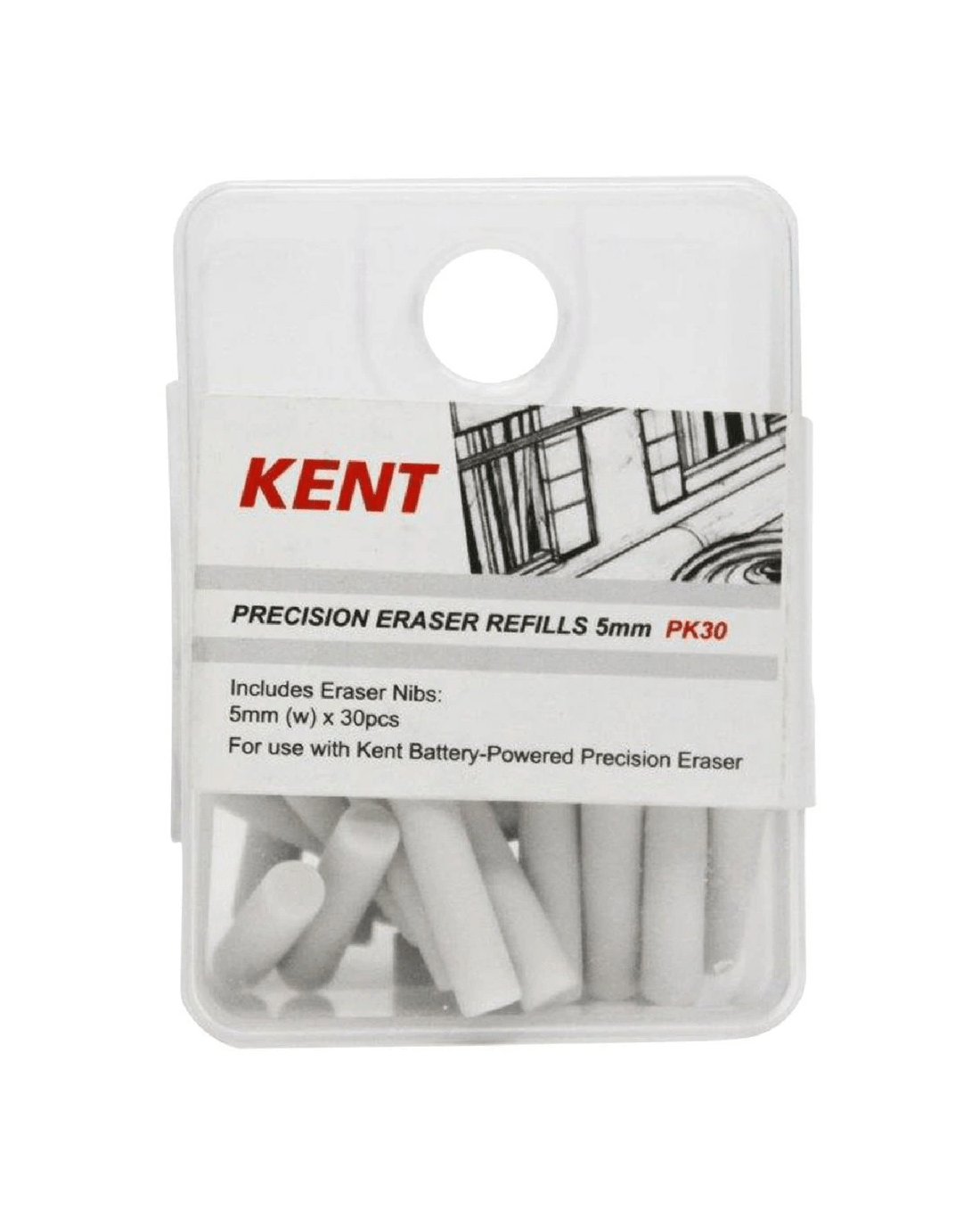 These Kent Precision Eraser Refills are designed for the Kent Battery Powered Eraser. They are 5 mm in size, and come in a handy 30 pack for repeated use.