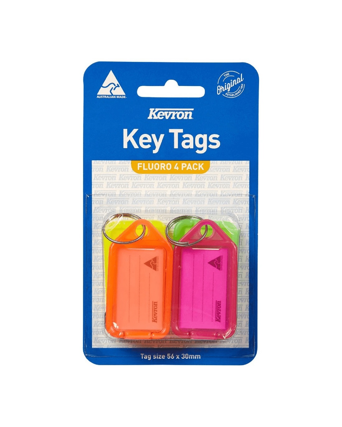Kevron Key Tags make it easy to quickly identify your keys. This handy pack includes 4 different fluoro colours so you can easily personalise and colour code your keys. The tags are made from durable plastic and come with a pre-cut paper insert label so marking and labelling your keys is quick and simple.