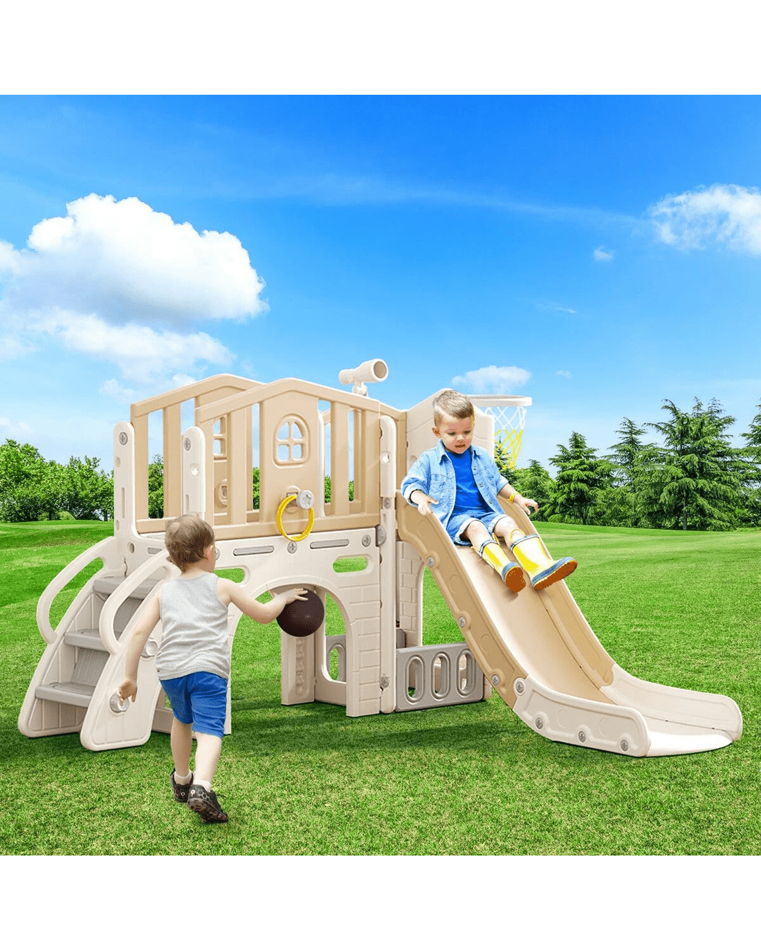 Kidbot 7 in 1 Kids Slide Set Ladder Steps Basketball Hoop Playground