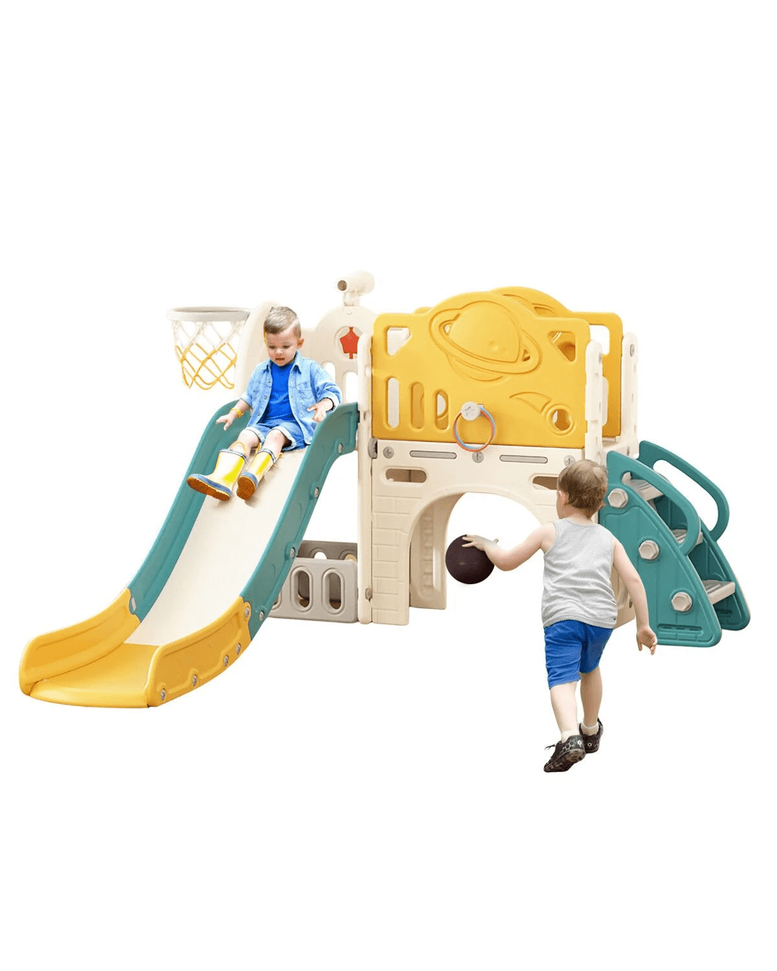 Kidbot 7in1 Kids Slide Set Ladder Steps Basketball Hoop Playground