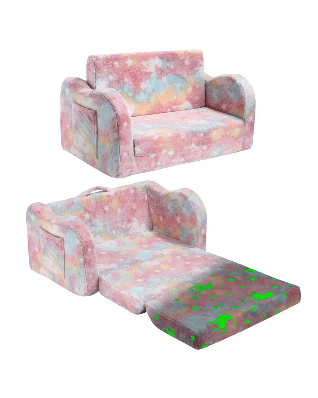 Kidbot Kids Flip Out Sofa Convertible Couch Lounge Chair Fold Comfy Toddler Bed 2 Seater Childrens Armchair Storage Glow