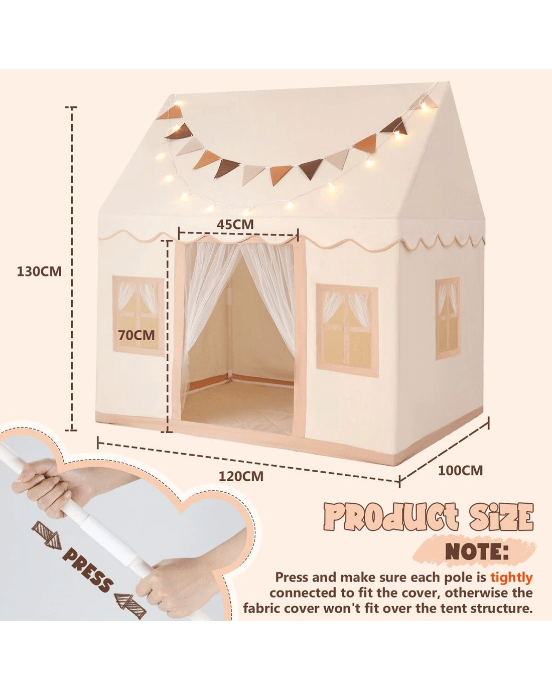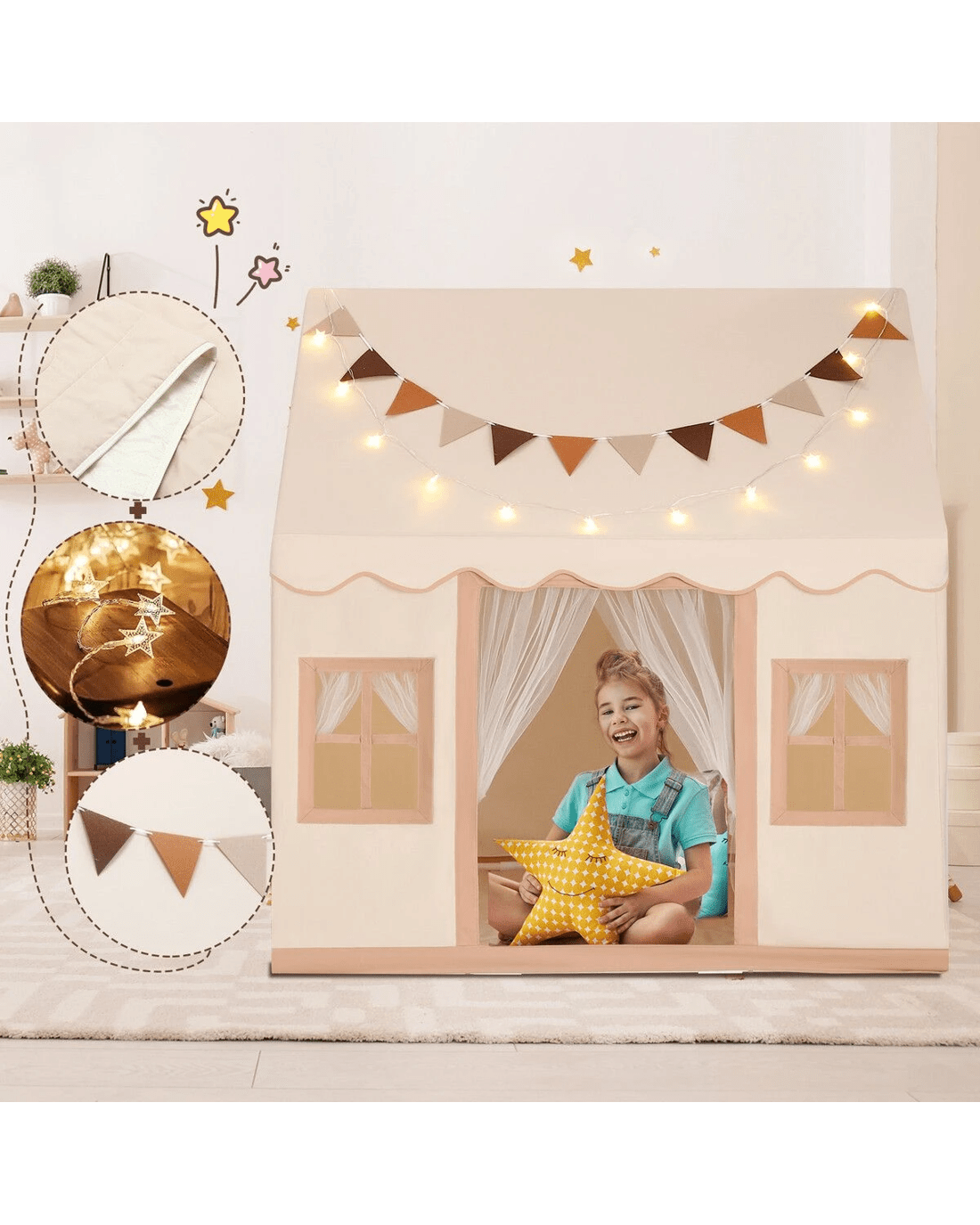 - VERSATILE GIFT: Give your kids an amazing haven with a neutral style that suits any decor. Complete with a door and three curtained windows, this tent is airy and beautiful, perfect for kids to enjoy imaginative play, reading, games, and adventures. Fuel boundless creativity and transform any space into a realm of wonder