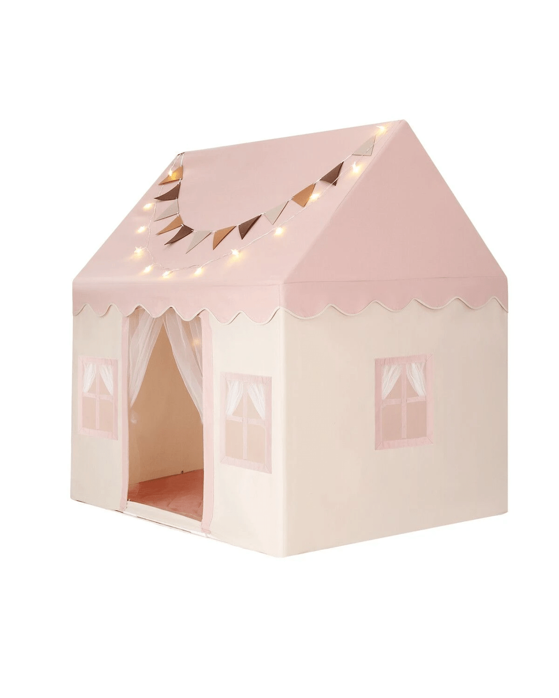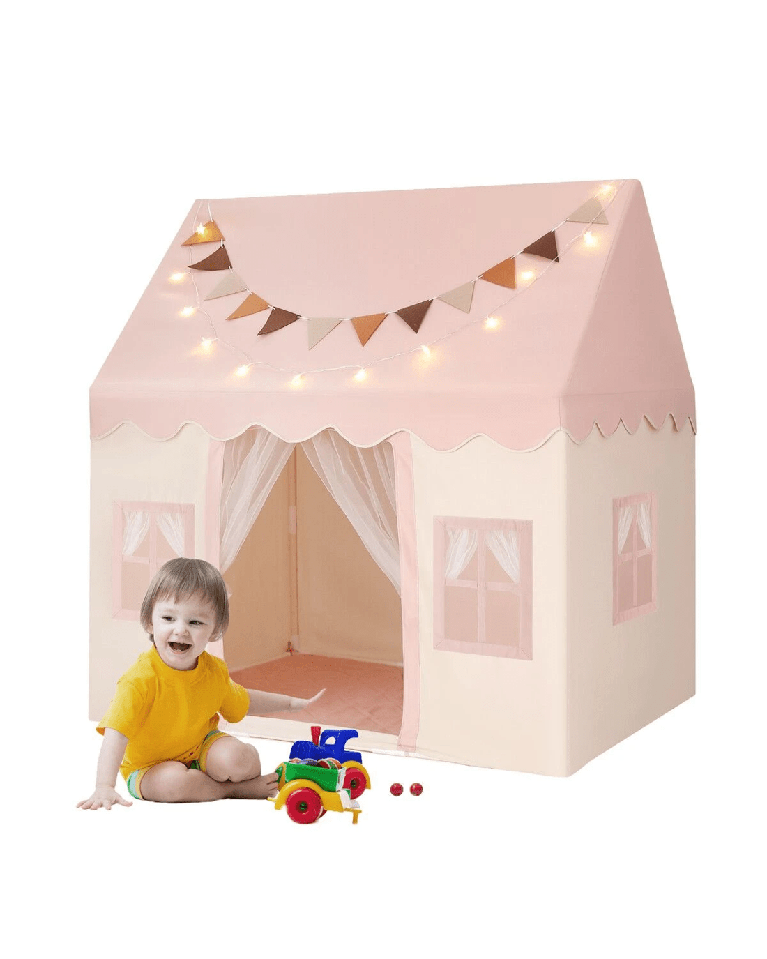 Offer your kids a cosy and comfortable space, like this kids playhouse indoor tent, to create endless possibilities. Designed for up to three kids to play and explore, this play tent is perfect for role-playing and storytime adventures. Also, this kids tent includes 3 metres of warm and soothing star lights, a banner, and a non-slip mat, all of which create an elegant ambience for any home decor. Moreover, its versatility allows for indoor and outdoor use, perfect for backyard or park play dates. Further, this pink princess castle is a wonderful gift, featuring an elegant style with a door and curtained windows, making it perfect for imaginative play, reading adventures, and peaceful naps. Made from premium polyester, our childrens tent is kid-friendly, safe and durable for years of use.