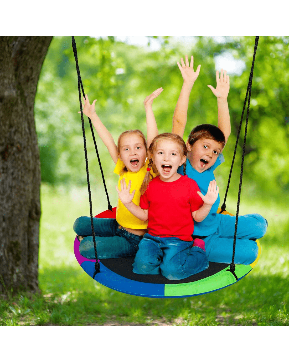- All-year-round Fun & Versatile Use: This 100 cm saucer tree swing is a funny indoor and outdoor activity gear for children of any age, providing a perfect space to play, read, listen to music, relax, and enjoy a happy time with friends. Besides, it is the perfect addition to your backyard, park, playground, and home