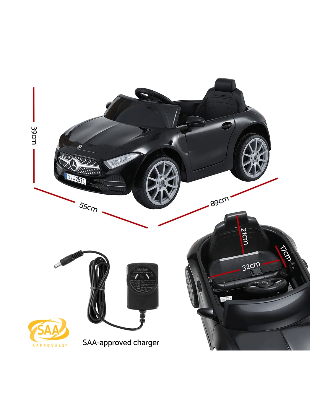Kids Electric Ride On Car Licensed Outdoor Toys Cars Music Remote - Black