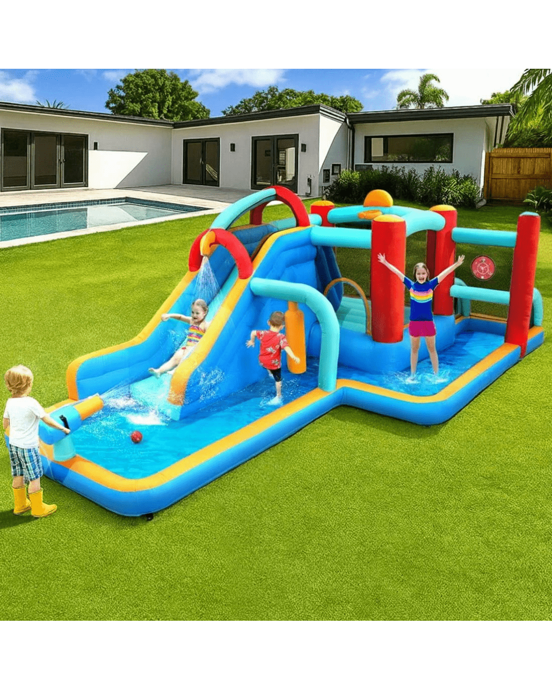 Kids Inflatable Water Slide Splash Pool Park Jumping Castle Bounce 615X322CM - Multi