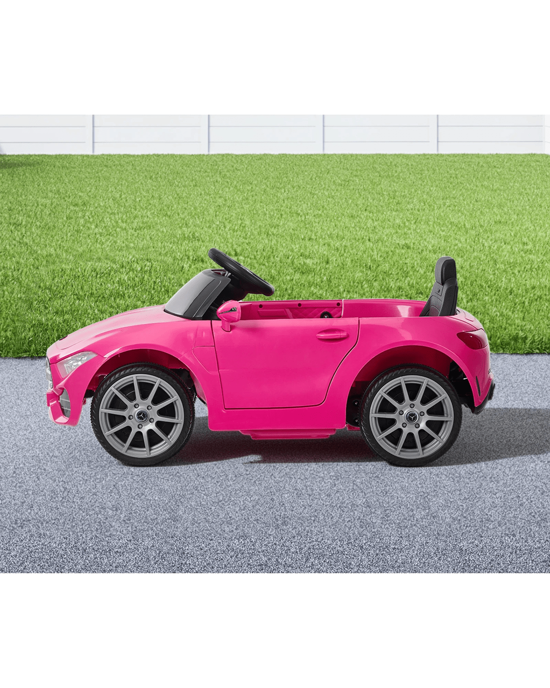 Officially licensed by Mercedes-Benz, our Mercedes Benz SL Roadster Ride On Car epitomises the image and feel of the German marque in a fun and thrilling mini package. Inspired by the legendary SL Roadster design, the Ride On Car displays all the visible body styling cues that mimic the actual vehicle. Such as the sculpted body lines, striking headlights, stylish alloy-like wheels and prominent diamond grille with Mercedes Benz badging.