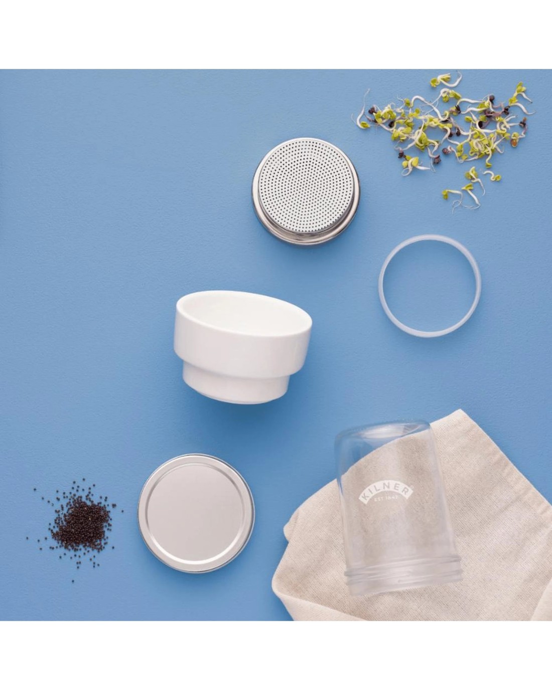 The Kilner® Sprouting Set is designed to make sprouting and storing seeds or grains as simple as possible. Sprouting is a great way to add extra nutrients, flavour and texture to your dishes and this set provides the best conditions for sprouts to develop.