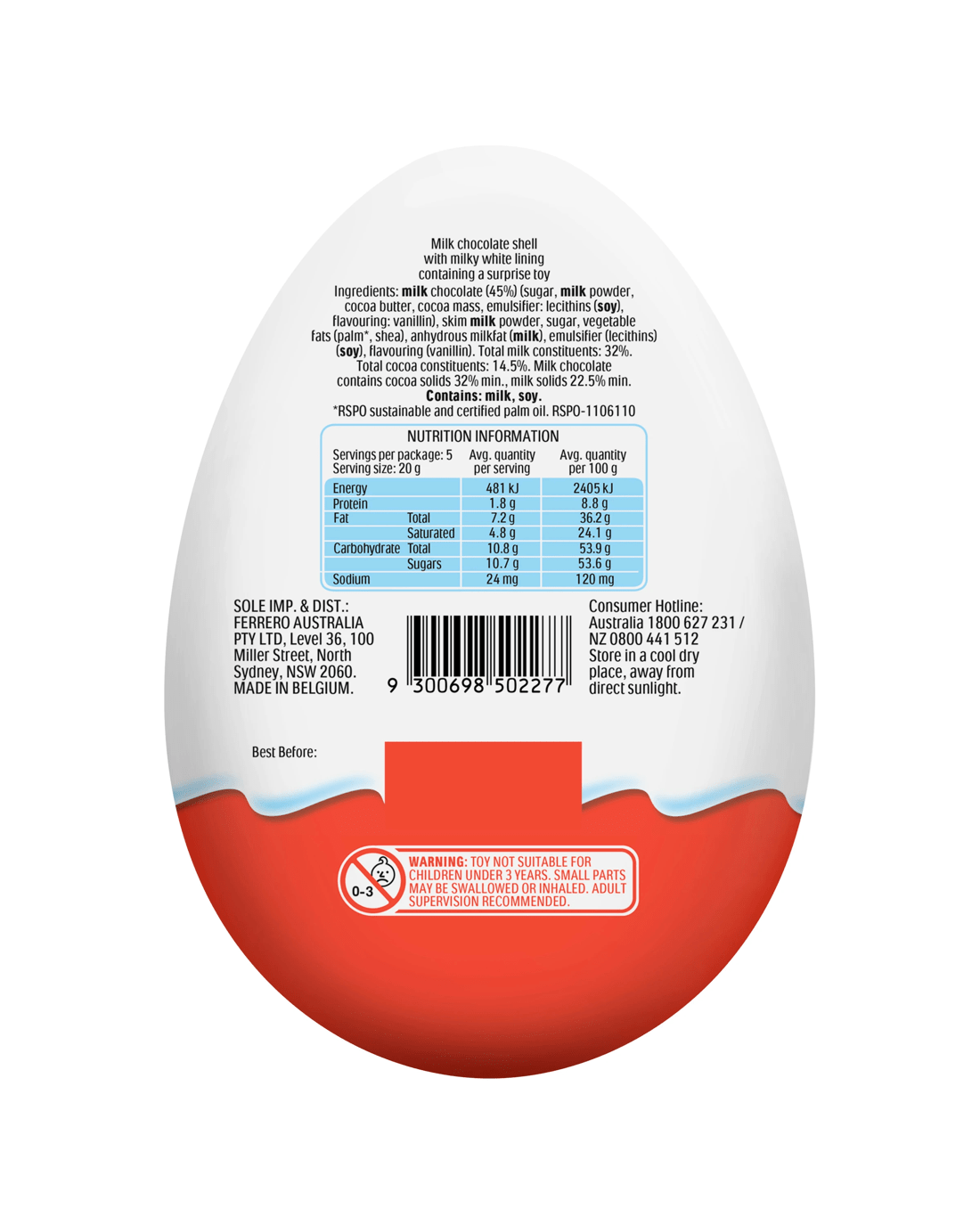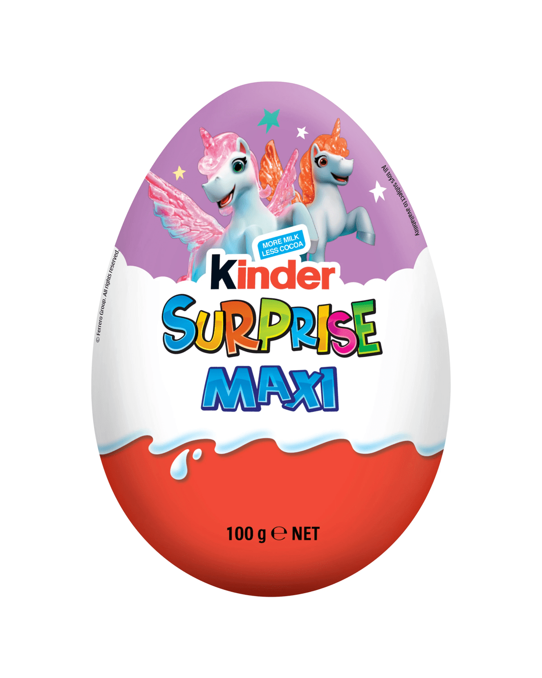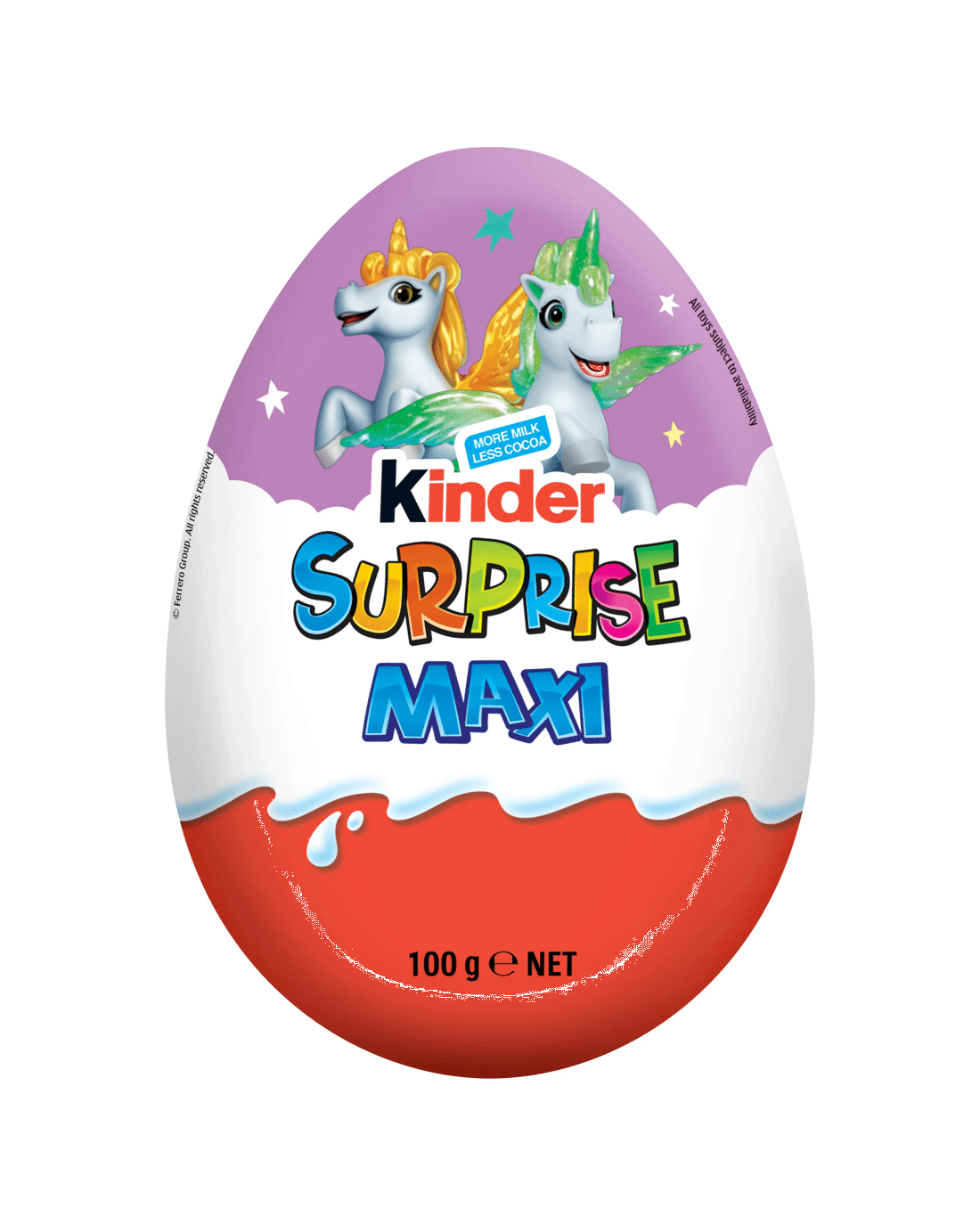*Each sold separatelyKinder Surprise is the unique 3-in-1 combination of delicious double-layered fine milk chocolate shell with a milky white lining, the emotion of the surprise moment and a small clever toy to play with.
