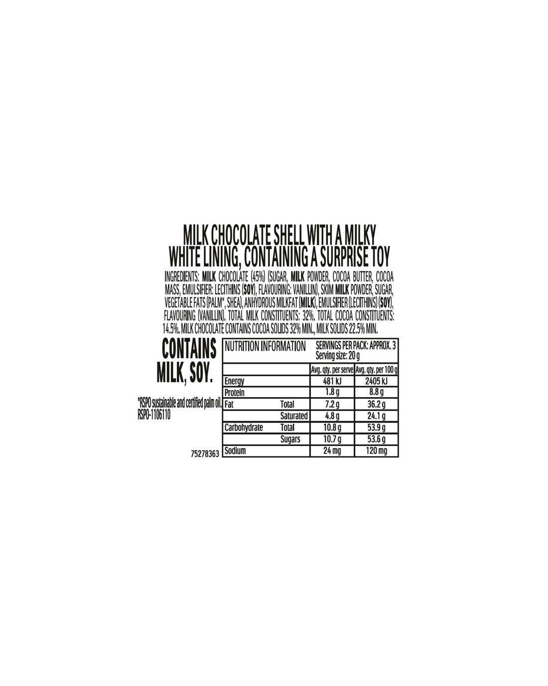 Kinder Surprise Bunny has a delicious milk chocolate shell with a milky white lining and contains a surprise toy.