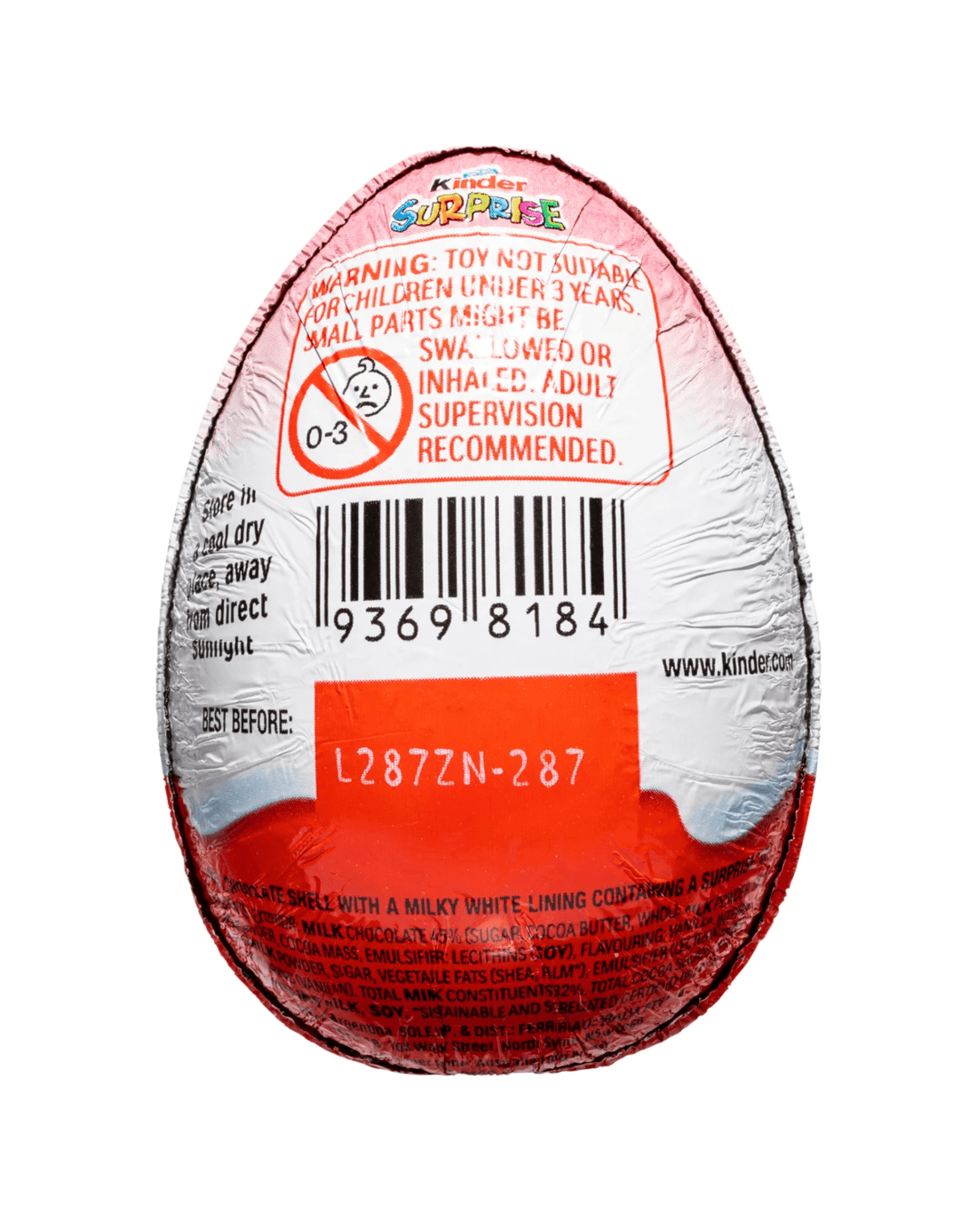 Sold by KmartKinder Surprise Milk Chocolate Egg Pink with Toy 20g