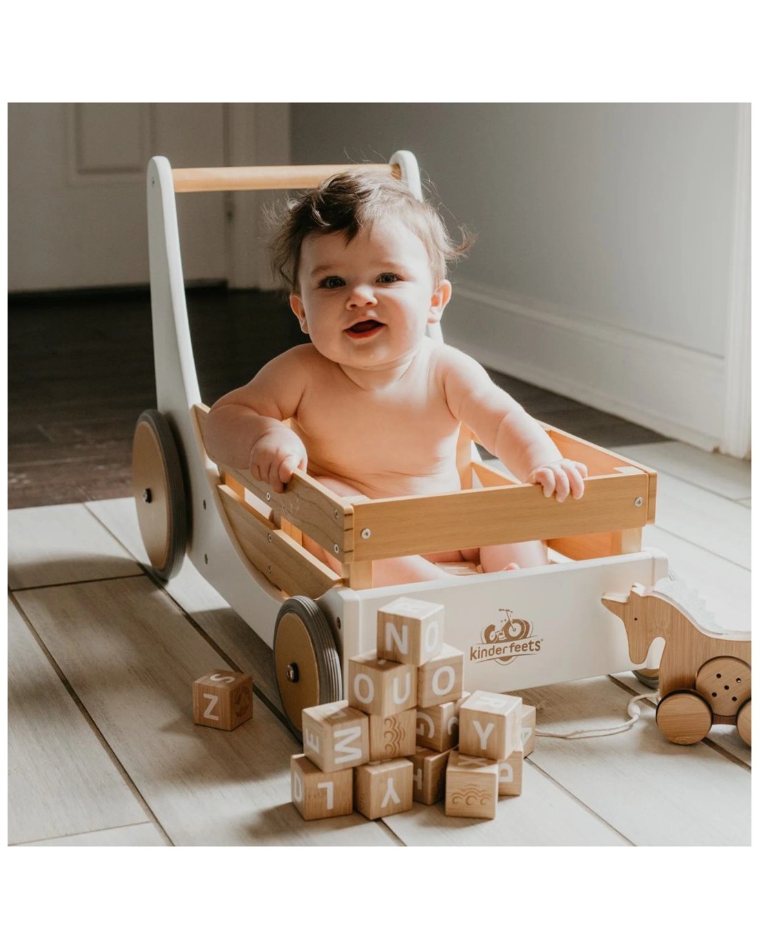 Sold by KG SuperStoreKinderfeets Wooden 62cm Cargo Walker Baby Toddler Walker Wagon 12 Months Plus - White