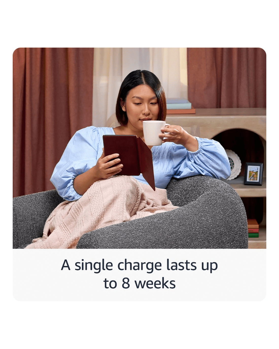 - Lose yourself in a book: Stay focused on the story with long-lasting battery life. A single full charge via USB-C lasts up to 8 weeks.