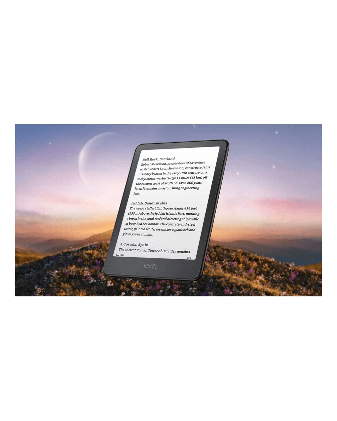 The new Kindle Colorsoft Signature Edition 2025 features a paper-like display optimised for reading in colour, bringing book covers and content to life. Colour your pages by highlighting your favourite lines and scenes in yellow, orange, blue and pink, invert black and white for dark mode, and use the built-in front light and glare-free display to read in any conditions, from bright sunlight to dark rooms. It's waterproof and worry free whether you're reading by the pool, in the bath or anywhere in between, with up to 8 weeks of battery on a full charge and no social media notifications or lockscreen ads for distraction-free reading.