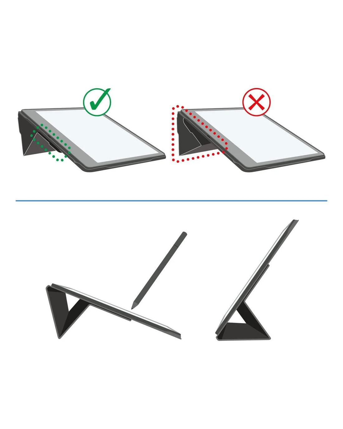 - Added Functionality - Front cover transforms into a built-in stand with choice of low or high angle positions for hands-free reading.