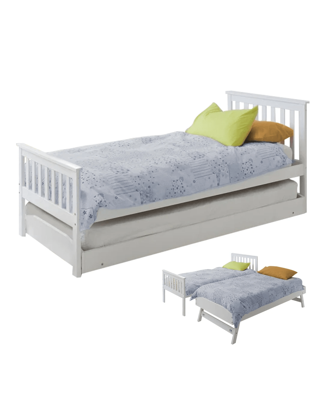 Kingston Slumber Kids Single Bed Frame with Pop Up Trundle - White