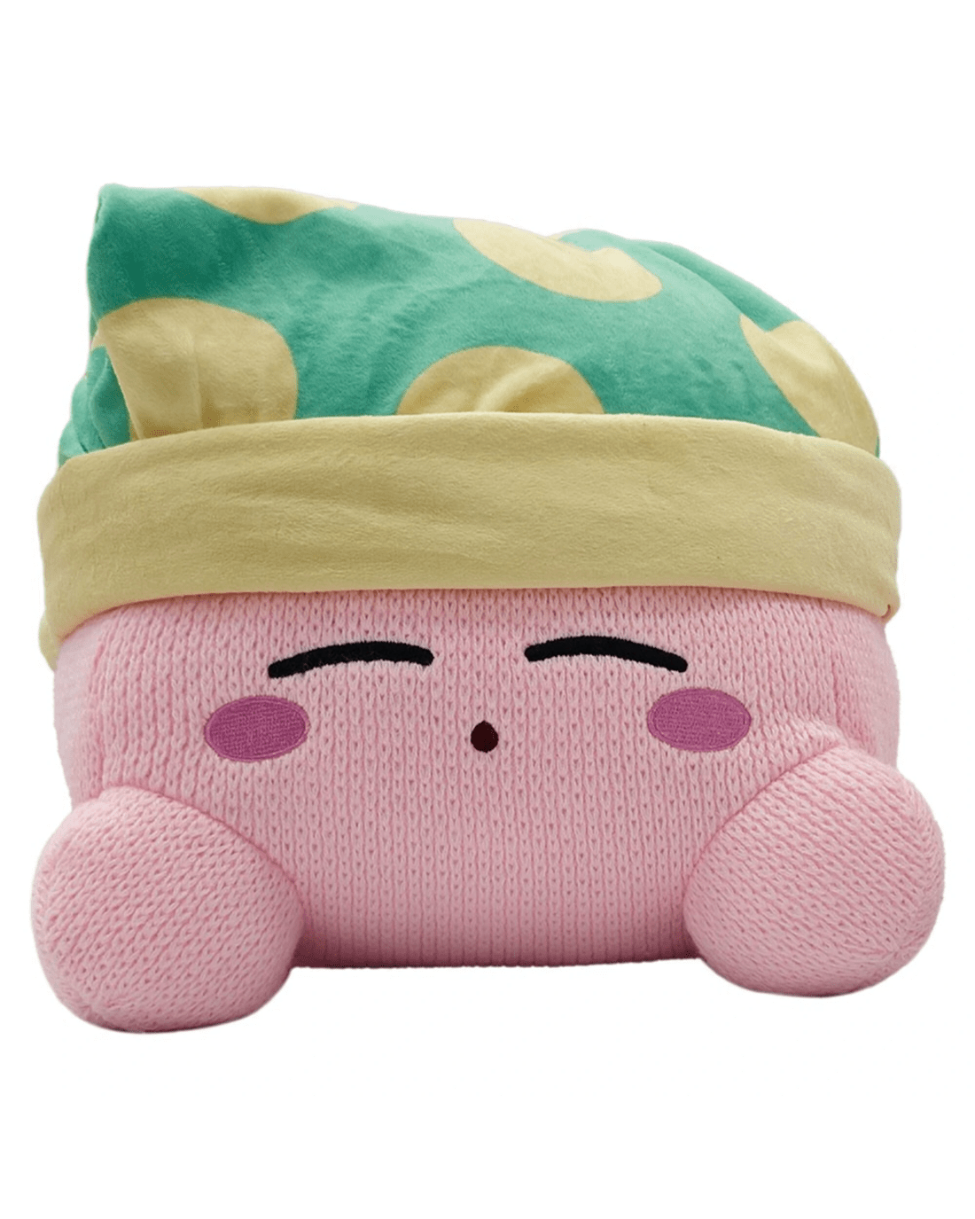 This plush features an adorable knitted Kirby dozing off!