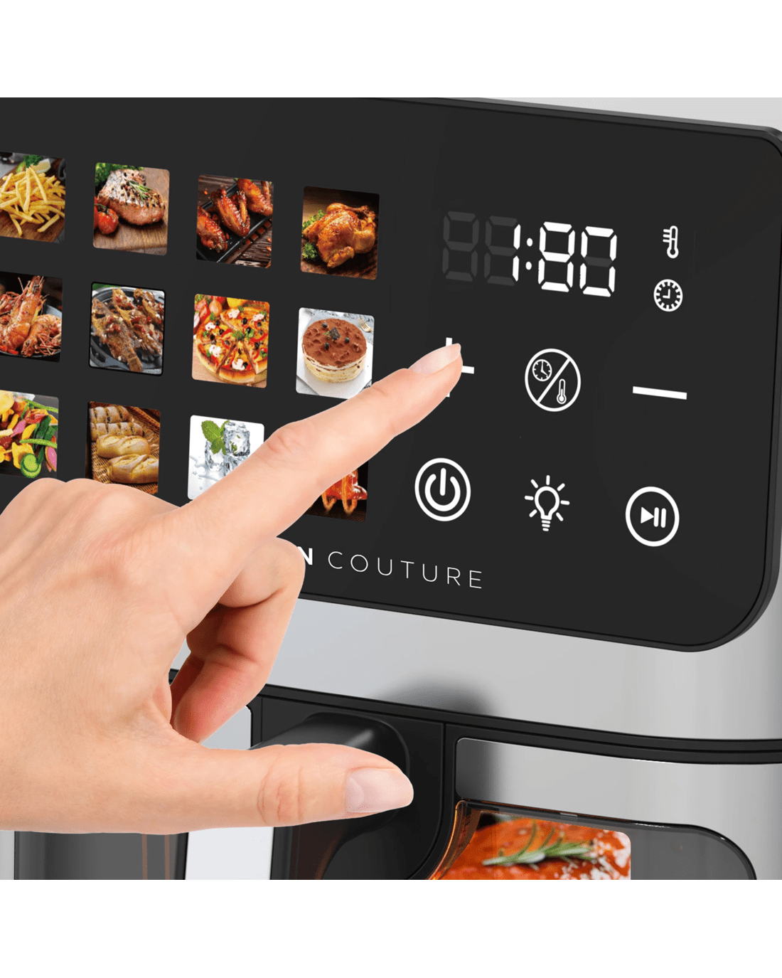 The large Ultra View XL digital touch screen offers clear visibility and easy control across a wide temperature range, while 12 preset cooking functions simplify everyday use. The ClearView™ window with internal lighting allows you to monitor food as it cooks without opening the basket or interrupting airflow.