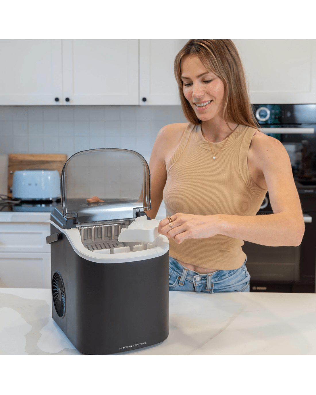 Kitchen Couture Compact Benchtop Ice Maker - Effortless Ice, Always On Demand. Experience the convenience of fresh ice at home with the Kitchen Couture Compact Benchtop Ice Maker - the sleek, modern solution for fast, fuss-free ice production.