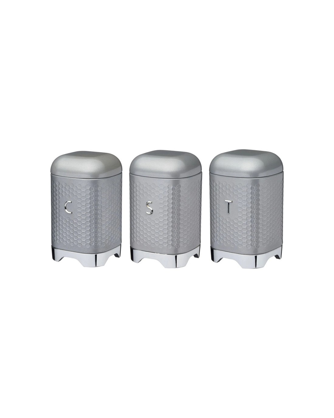 Kitchencraft 3pc Lovello Geometric Sugar Tea Coffee Canister Combo Carbon Steel - Grey