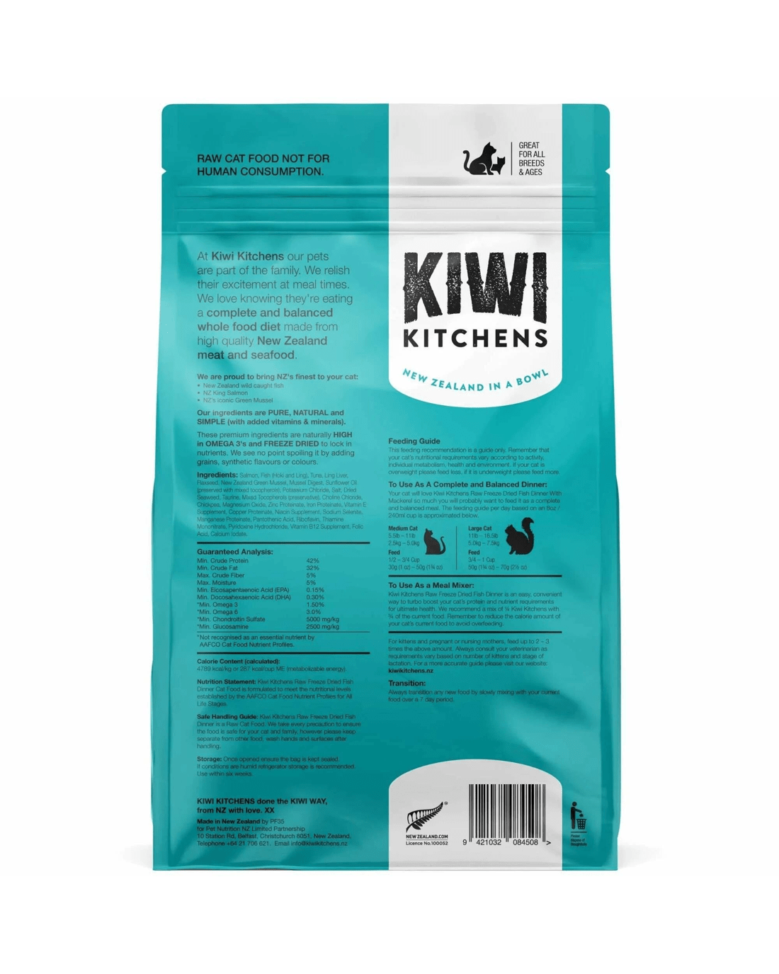 Kiwi Kitchens Air-Dried Single Protein Cat Dinner is a gently air-dried, single-protein food made in New Zealand.