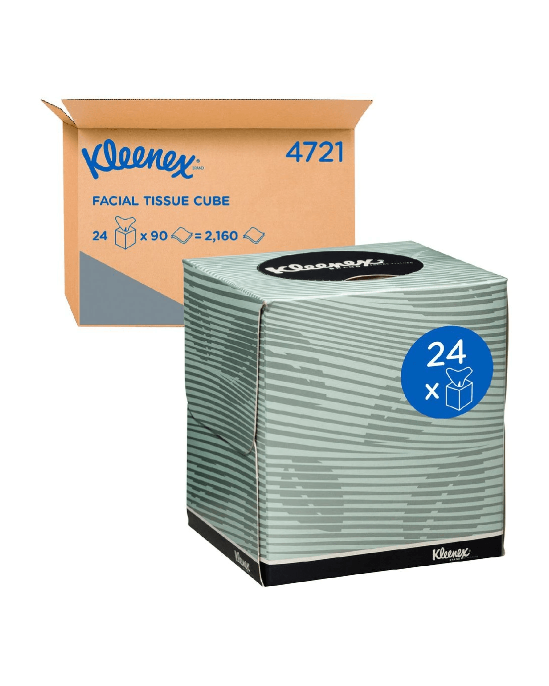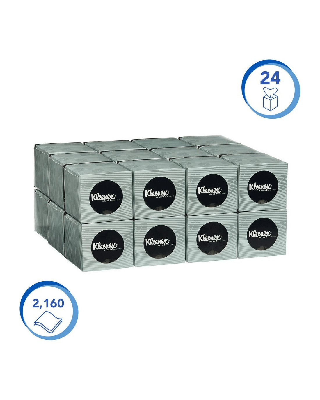 - One case of Kleenex facial tissues contains 24 facial tissue cubes.