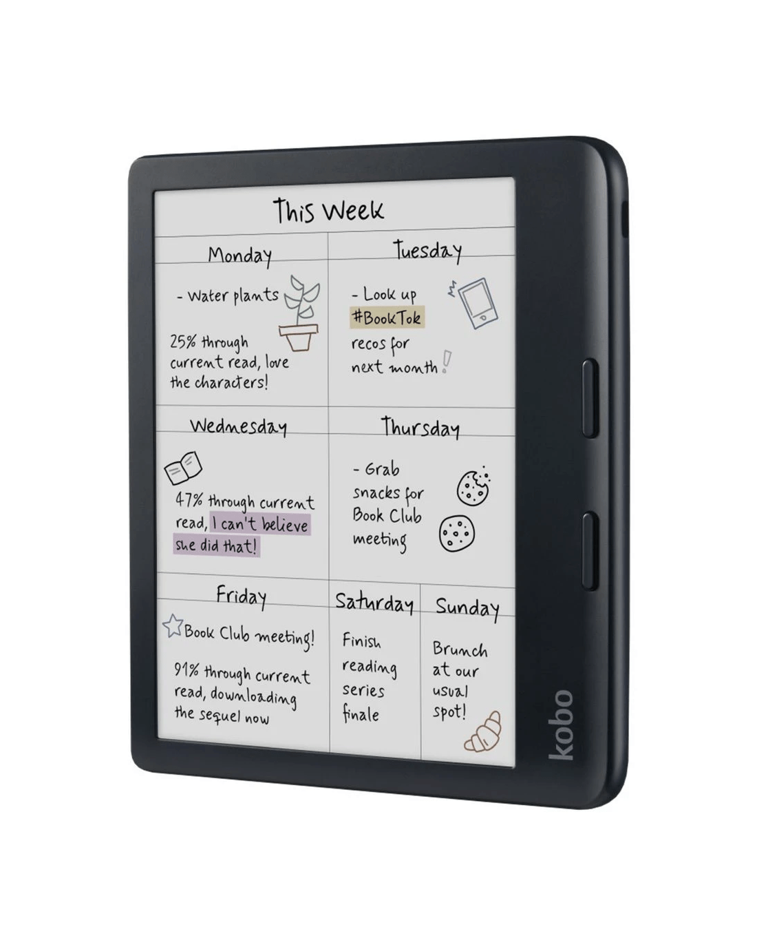 • Whether you're capturing a book club note, a journal entry, or an inspired thought—it’s never been easier or more fun with Kobo's integrated notebooks.