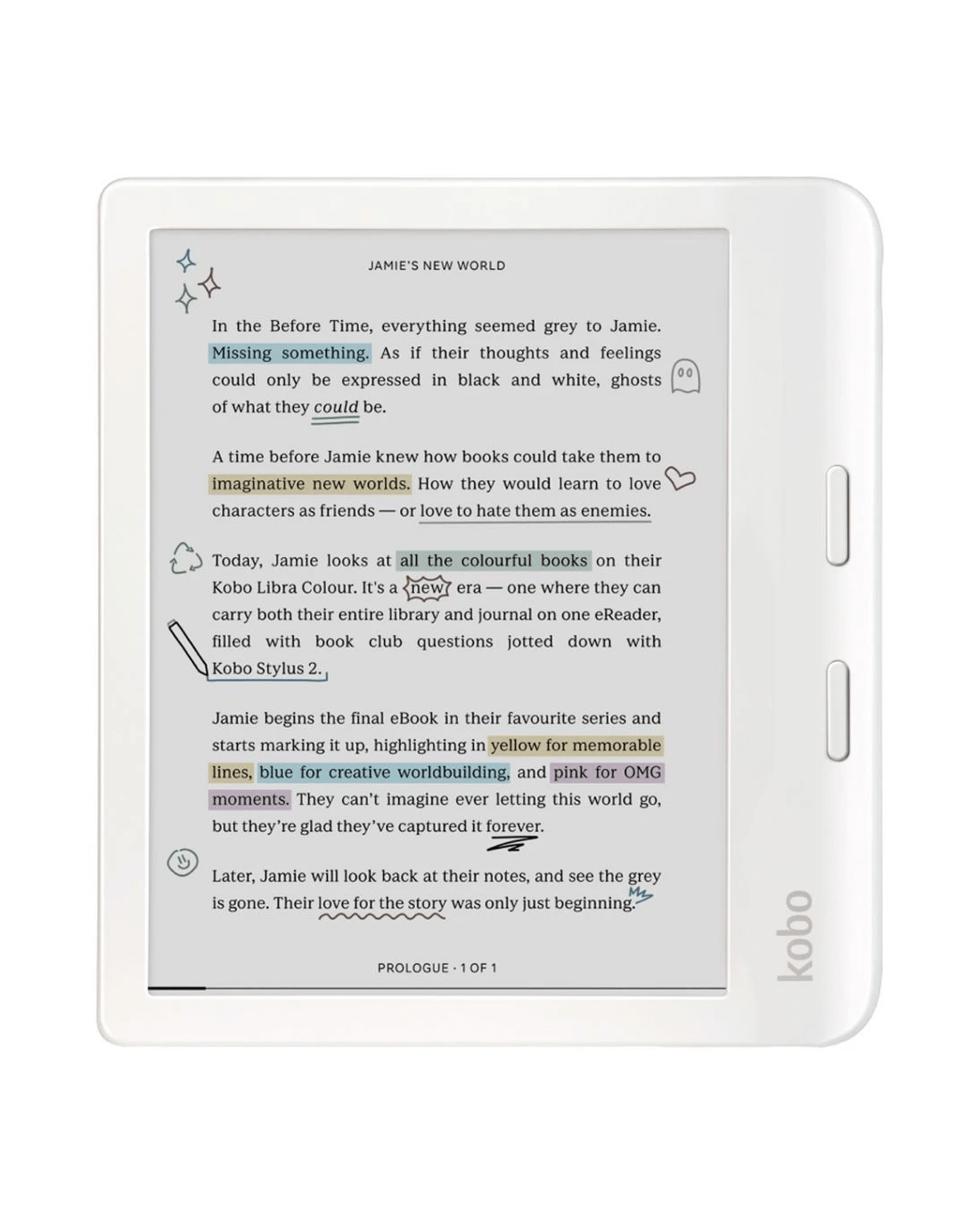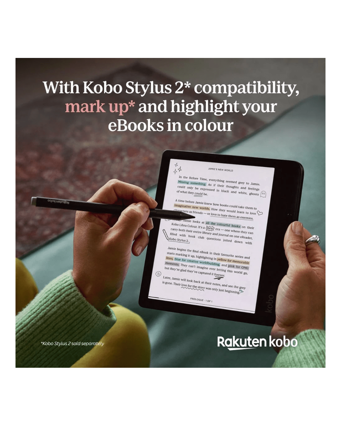 - With Kobo Stylus 2 (sold separately) compatibility, you can mark up and highlight your eBooks in colour.