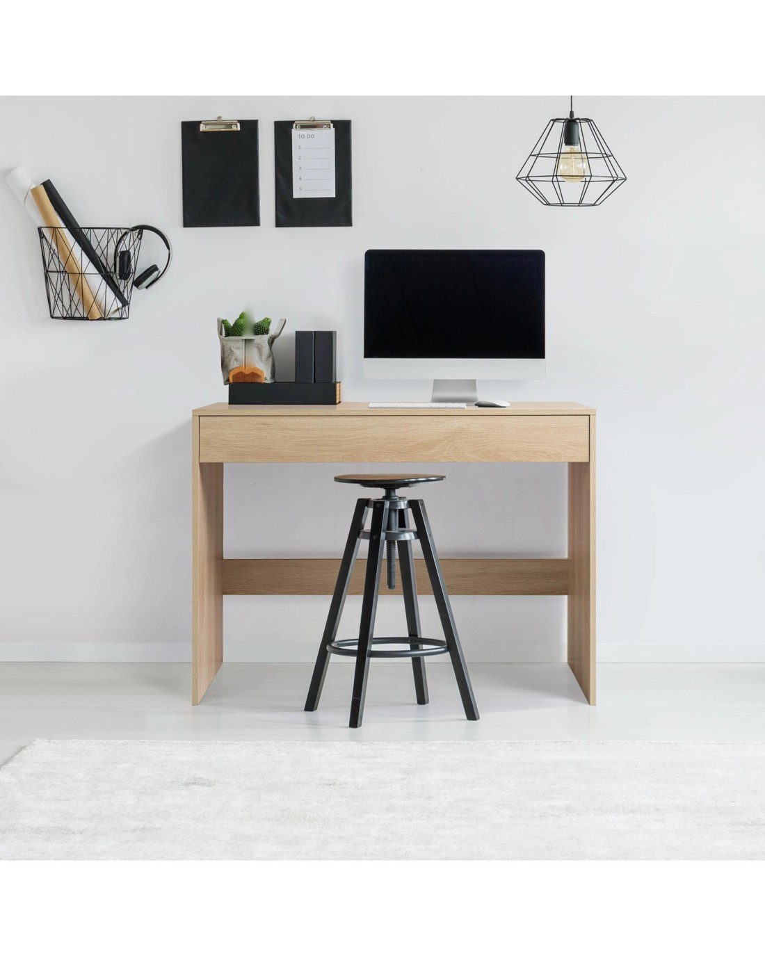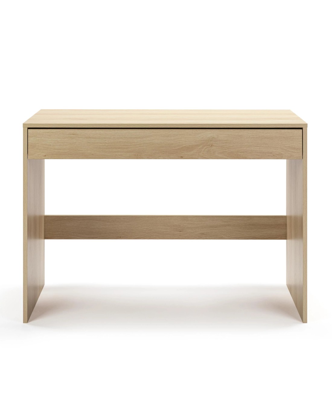 Get your work space organised with the Belle desk with full-width drawer. Made from particleboard with an attractive oak woodgrain finish, this modern and practical desk is the solution for any work and study from home setup. The full-width drawer provides generous storage space and the desk is supported by solid end panels, and is simple to assemble. Overall assembled dimensions: 100cmW x 48cmD x 73cmH Product details and features: Made from particle board with paper lamination Full width drawer with smooth anti-rust metal runners Assembly instructions included This product is flat packed and requires assembly. Recommended two-person assembly.