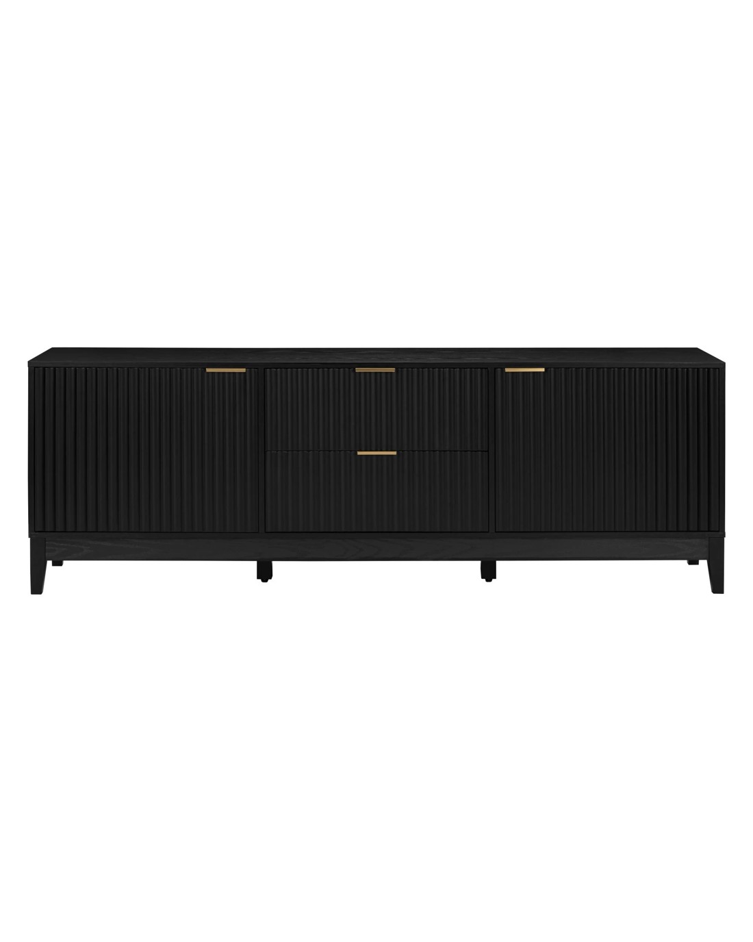 This 1.8m entertainment unit is a designer piece for your room. With a black aesthetic it offers a modern style, and is equally useful as a low sideboard or buffet.Plenty of practical storage space and options are provided behind the 2 hinged doors and within the 2 pull-out drawers.Overall assembled dimensions: 180W x 39D x 61cmHProduct is supplied flat packed in 2 cartons and requires assembly (2-person assembly recommended).Product details and features:Doors and drawer fronts and legs made from solid pine woodBody panels made from MDF and Particleboard with a laminated finish2 drawers with smooth metal runners2 doors with sturdy metal hingesAssembly instructions includedWARNING: Children have died from furniture tipover.ALWAYS secure your television with an anchor deviceNEVER allow children to stand, climb, or hang on drawers or shelves