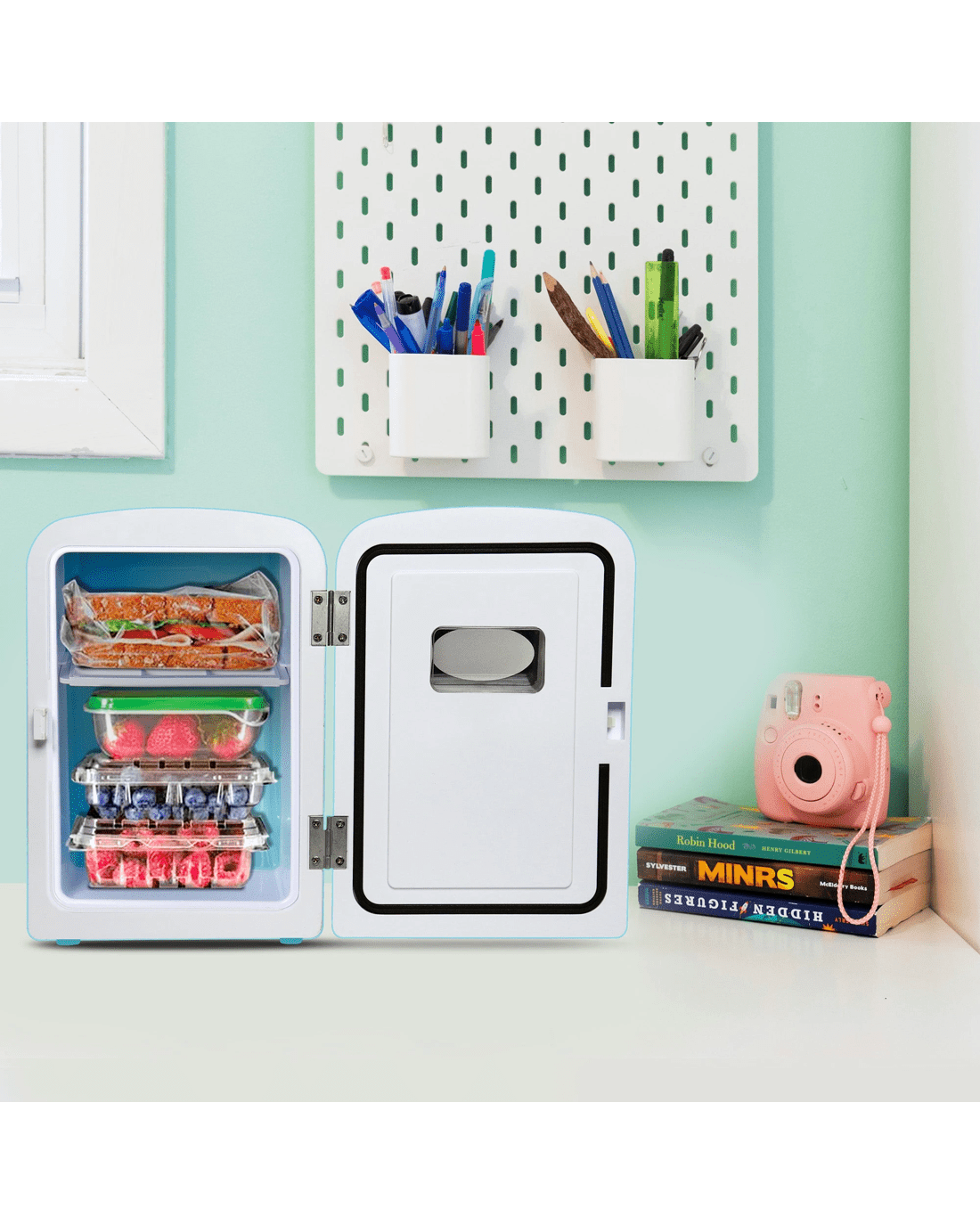 Unique Gift Idea: With its portable design, eye-catching chrome accents, and retro refrigerator silhouette, this personal mini fridge would make the perfect fun and functional gift for moms, students, teens, brides, and more