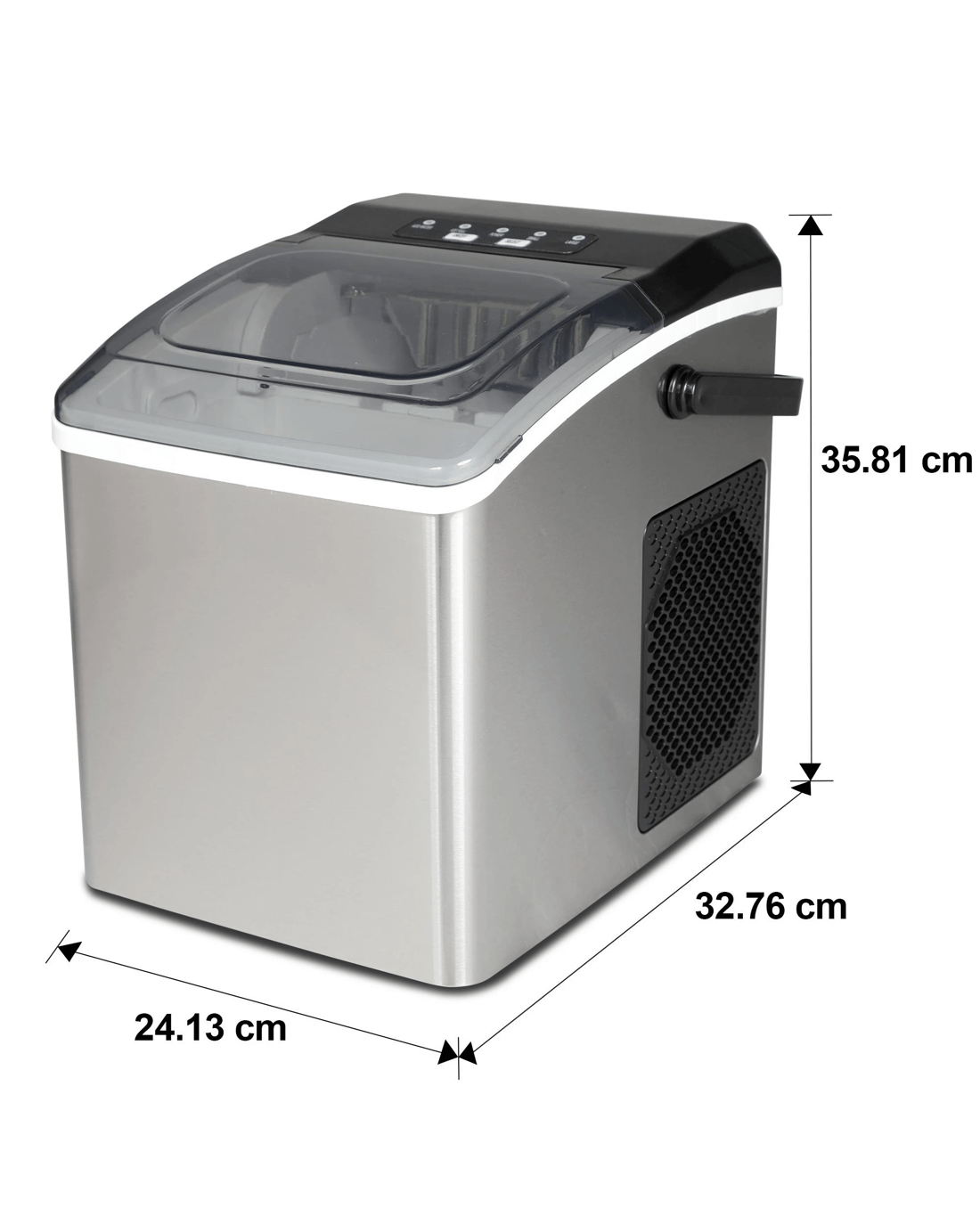Koolatron's powerful automatic ice maker is perfect for parties and family get-togethers with the capacity to make up to 11.7 kg of ice per day. High-efficiency compressor cooling means this portable ice maker can produce your first set of ice cubes in only 6 minutes, hours faster than in a tray in your freezer! Just fill the 1.3 liter water reservoir, select your ice size, and press the power button to make all the bullet-shaped ice cubes you need. Convenient viewing window lets you see when your ice is ready and digital indicator alerts you when the reservoir needs refilling. Removable ice basket and handy ice scoop make it easy to transfer cubes to your freezer for storage and are top-rack dishwasher-safe for your convenience. The sleek stainless steel finish will look amazing in your kitchen, on your home bar, or in your caravan and built-in self-cleaning mode means less time washing up and more time with your guests.