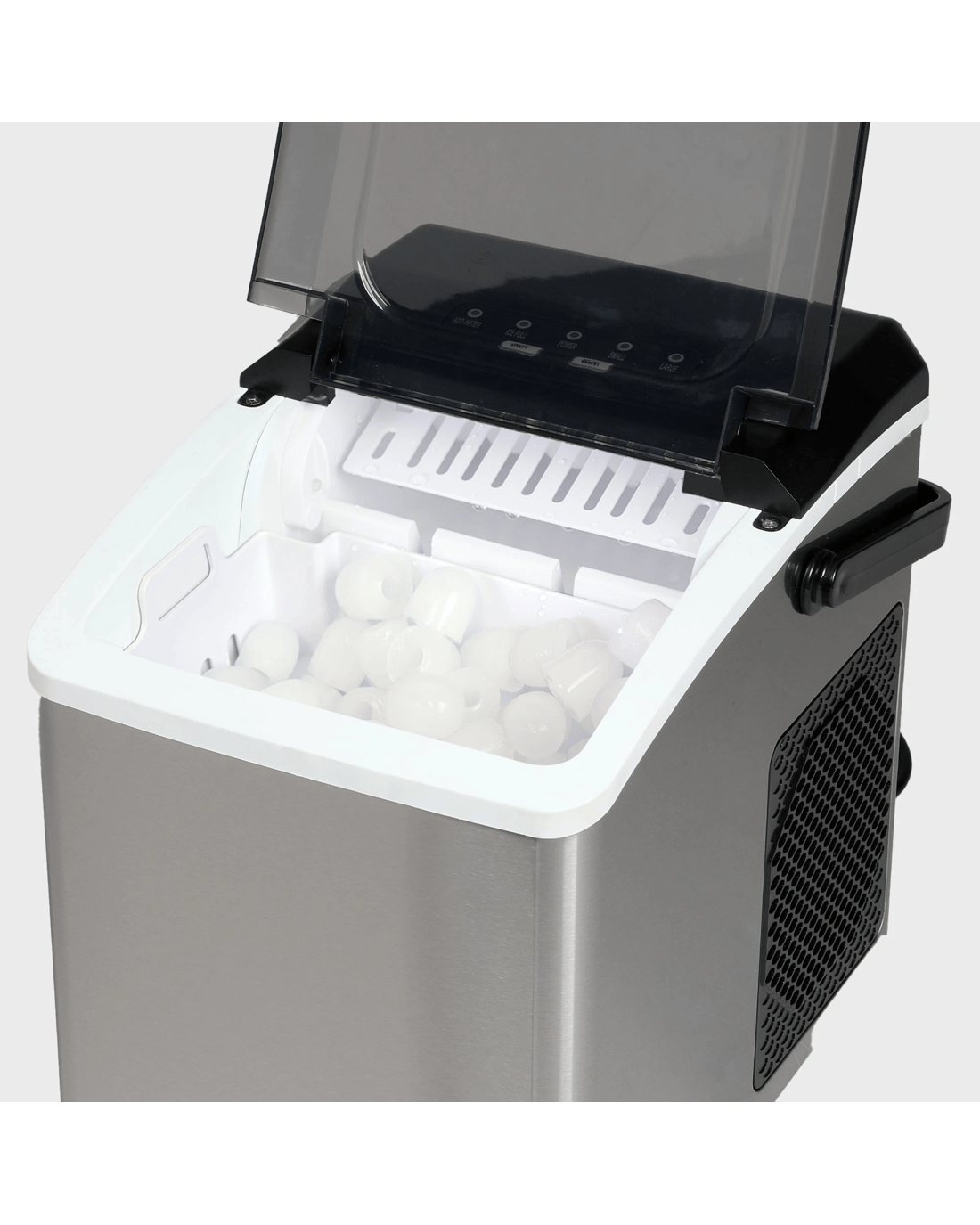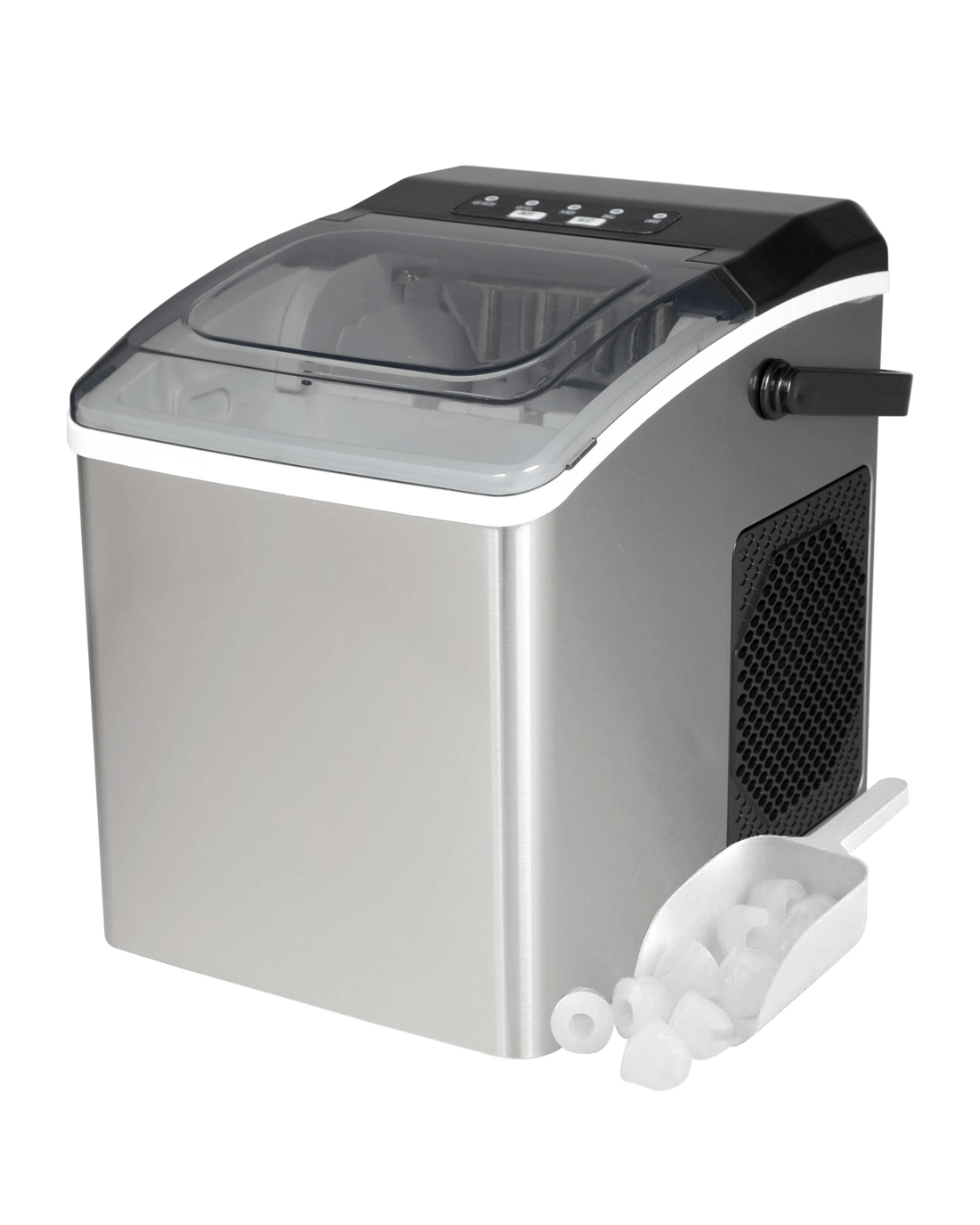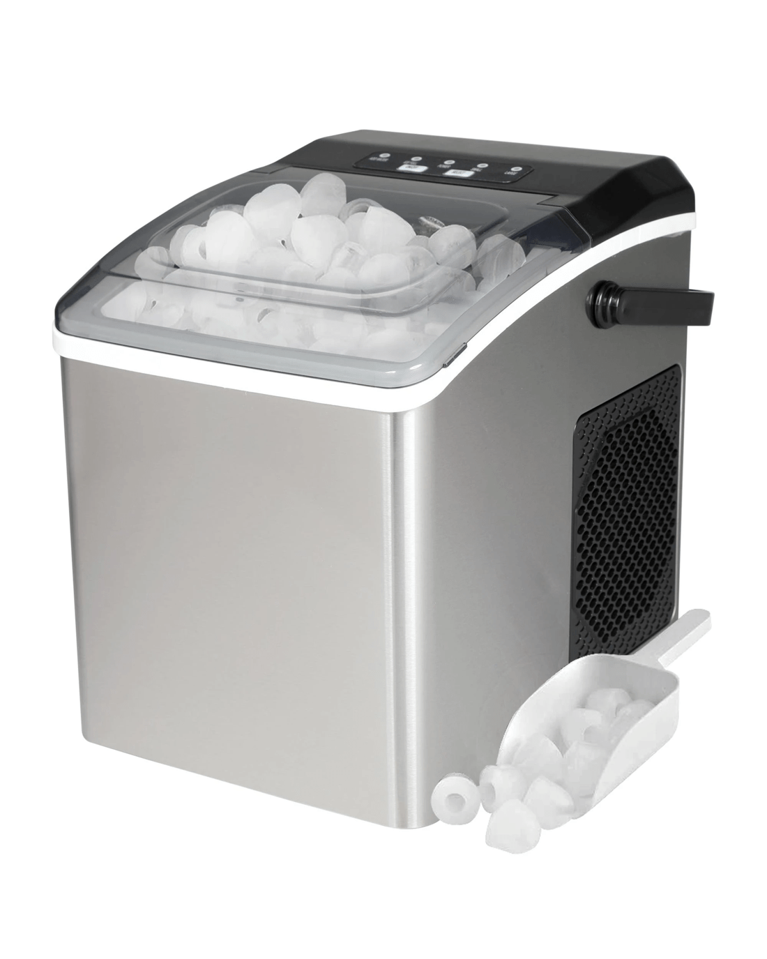 Included components: ice-maker base; removable ice bucket; ice scoop