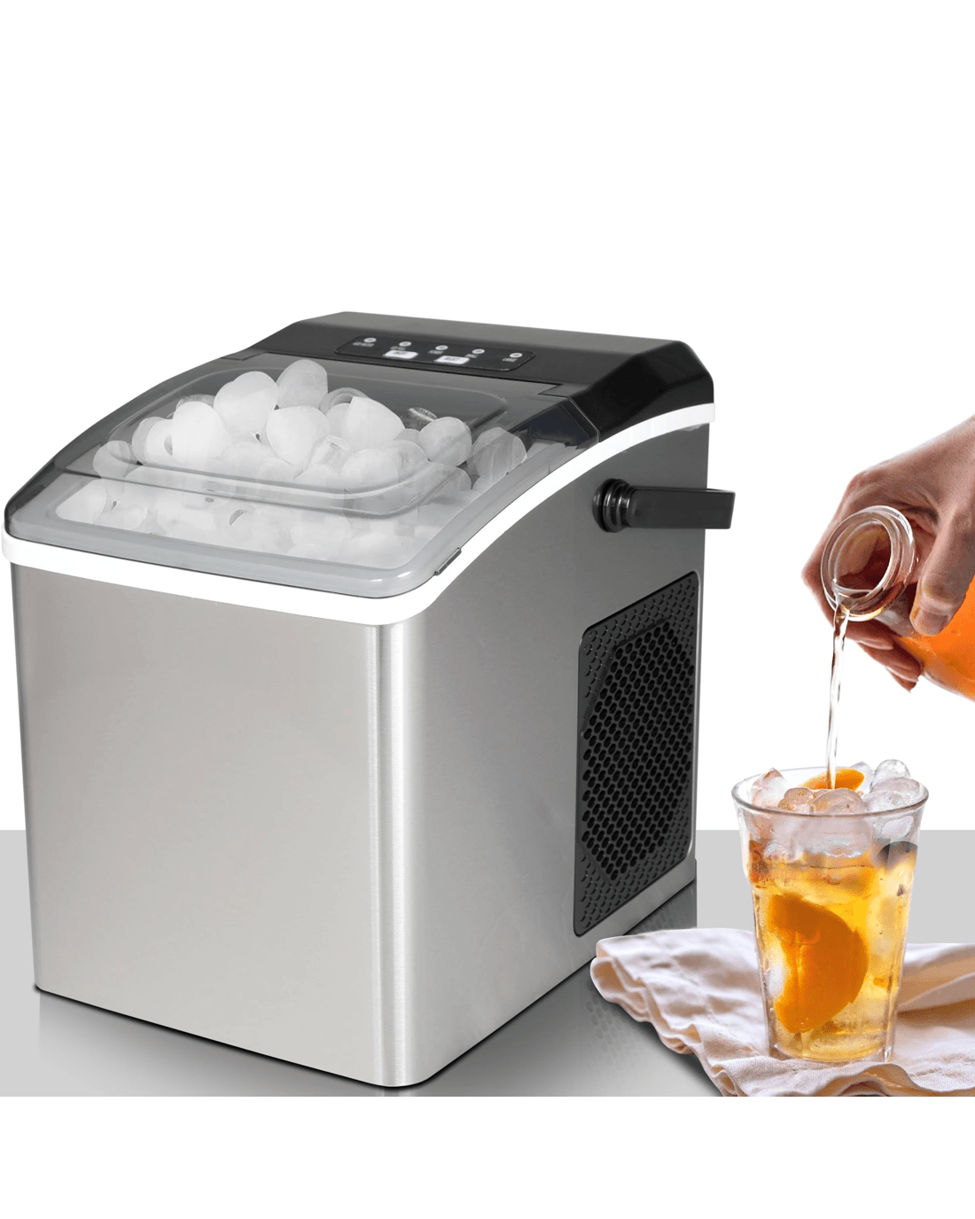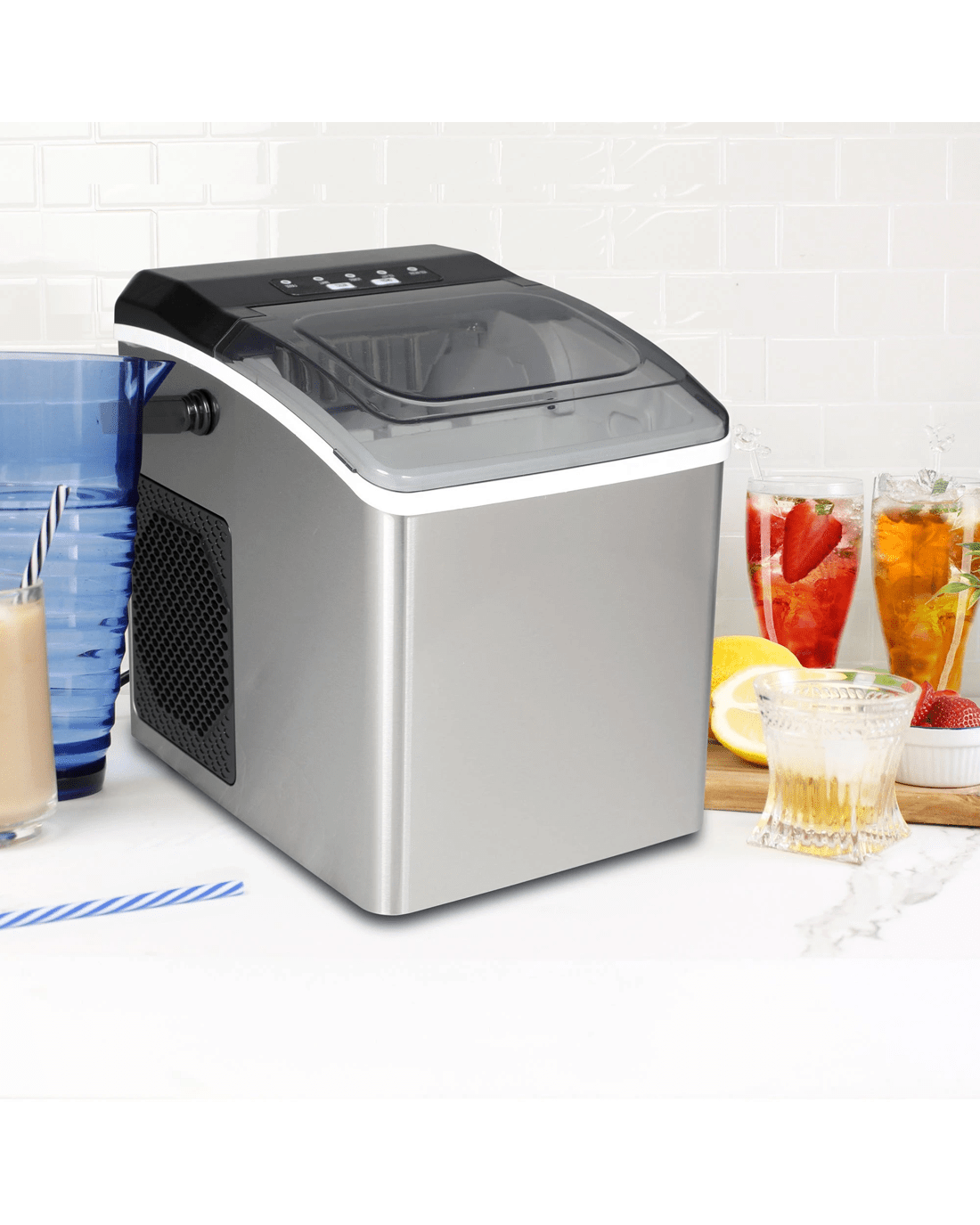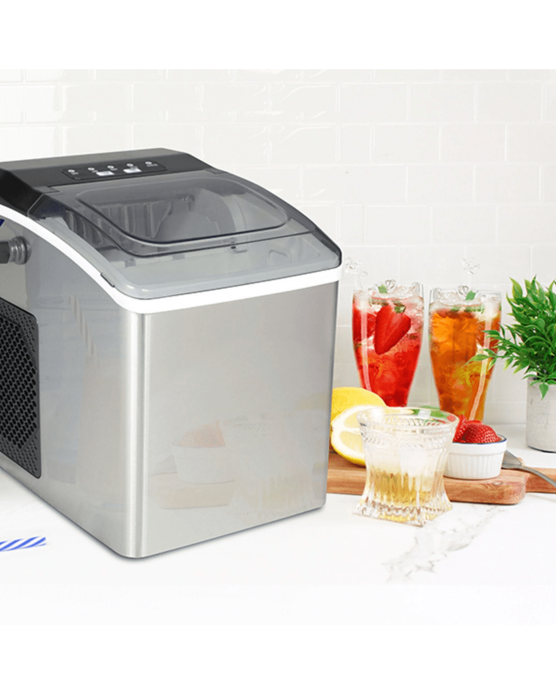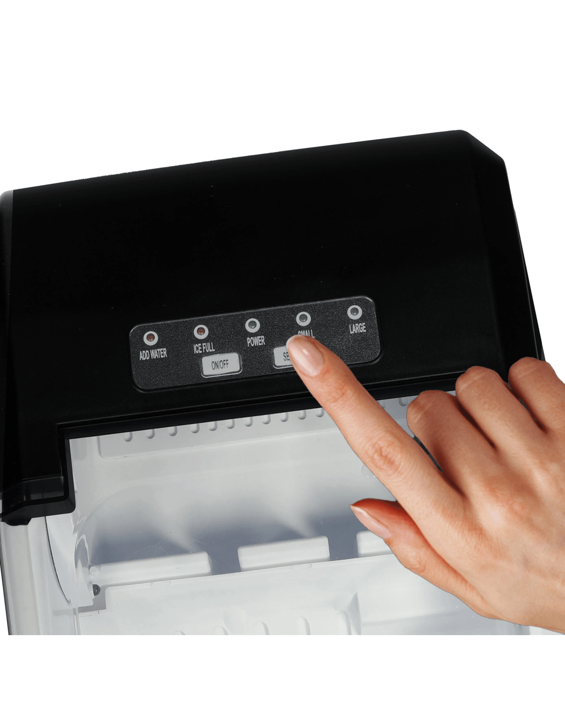 Included components: ice-maker base; removable ice bucket; ice scoop